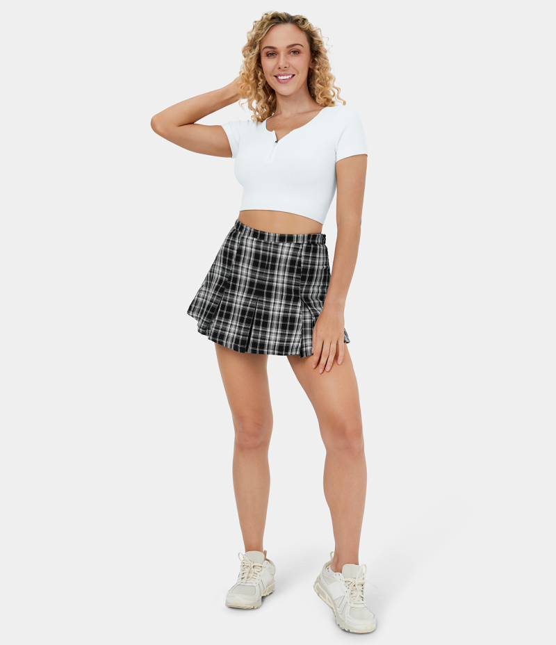 :: Halara Everyday High Waisted 2-in-1 Plaid Pleated Activity Women's Skirts Black Grey Gradient Plaid | 105239-KOG