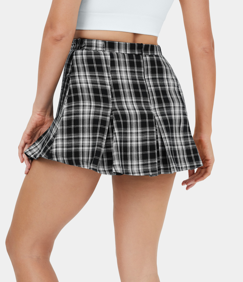 :: Halara Everyday High Waisted 2-in-1 Plaid Pleated Activity Women's Skirts Black Grey Gradient Plaid | 429538-POB