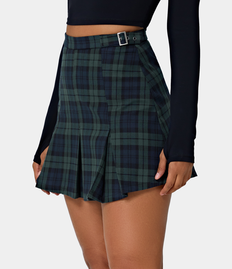 :: Halara Everyday High Waisted 2-in-1 Plaid Pleated Activity Women's Skirts Blue Green Plaid | 314786-LVZ