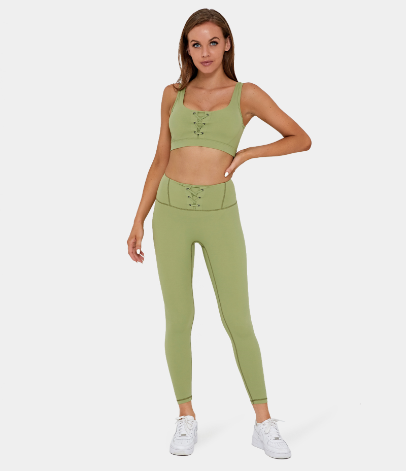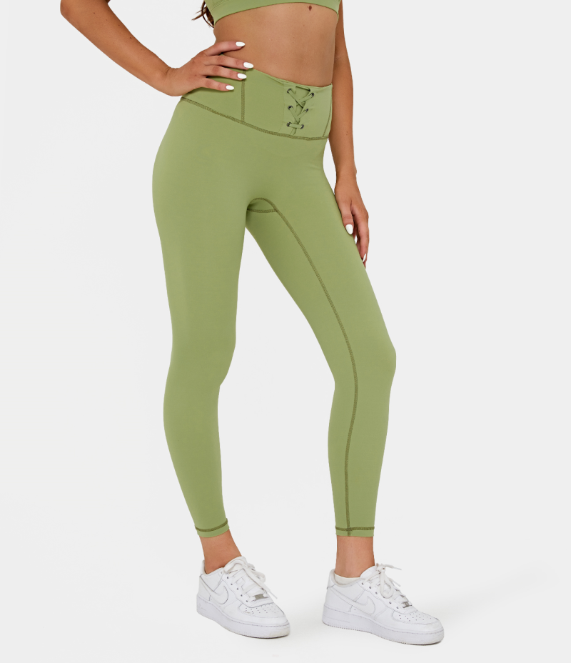 :: Halara Everyday High Waisted Lace Up 7/8 Women's Leggings Celery | 183249-YOH