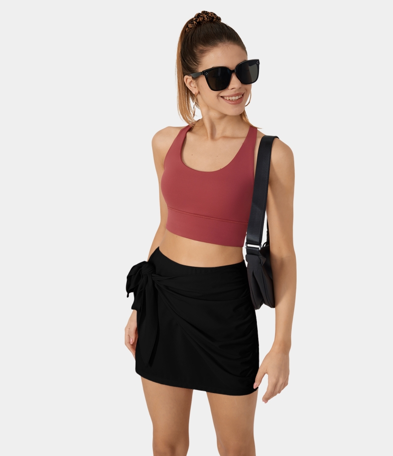 Halara Everyday High Waisted Lace Up Plain Women's Skirts Black | 314826-RSI
