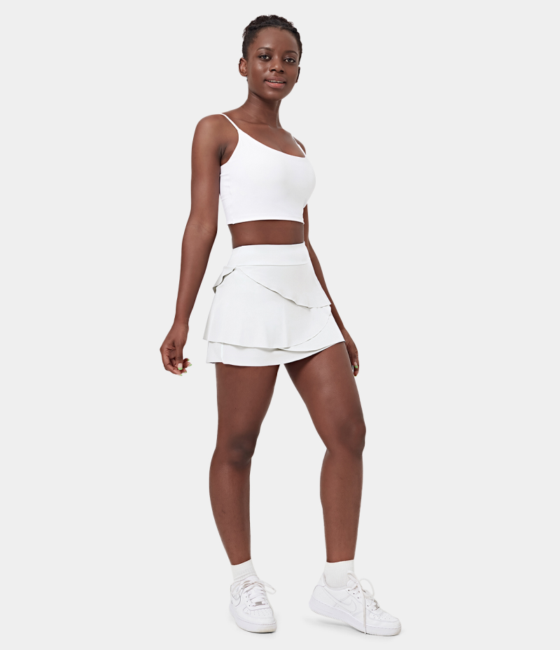 :: Halara Everyday High Waisted Pocket Tiered Petal 2-in-1 Golf Women's Skirts White | 431856-IDY