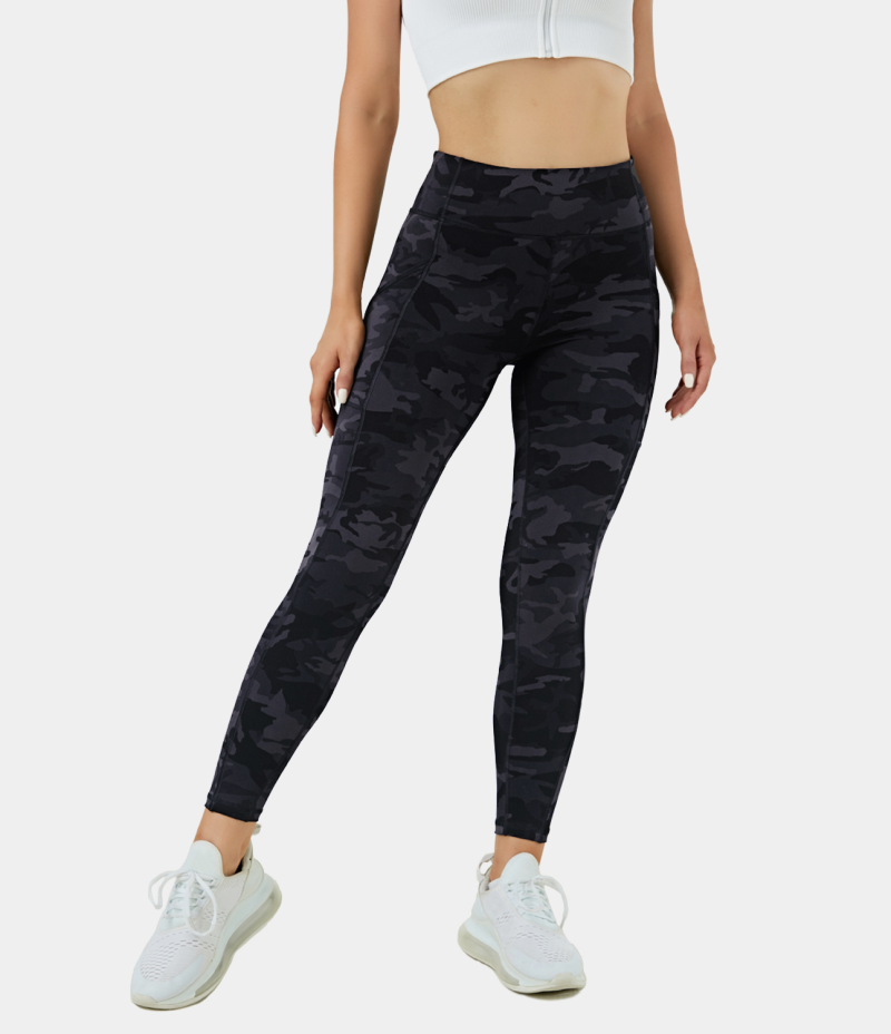 :: Halara Everyday High Waisted Side Pocket 7/8 Women's Leggings Black Camo | 923051-POM
