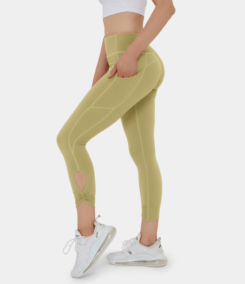 :: Halara Everyday High Waisted Side Pocket Calf Twisted Design 7/8 Women's Leggings Golden Granola | 602375-UIE