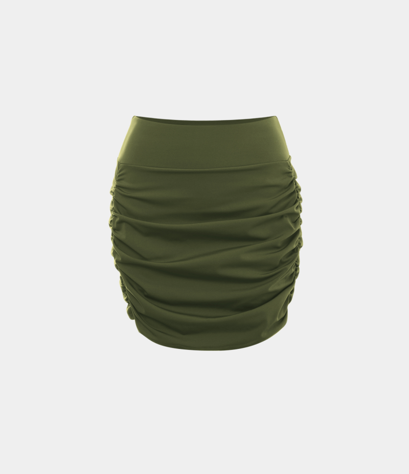 :: Halara Everyday Mid Rise 2-in-1 Ruched Side Pocket Plain Activity Women's Skirts Sage Green | 653201-BAD