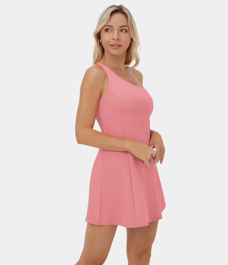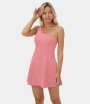 Halara Everyday One Shoulder Side Pocket 2-Piece Activity Women's Dress Candy Pink | 085729-TKZ