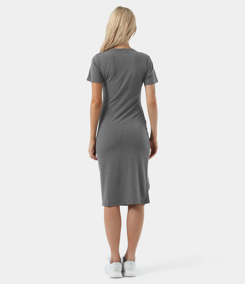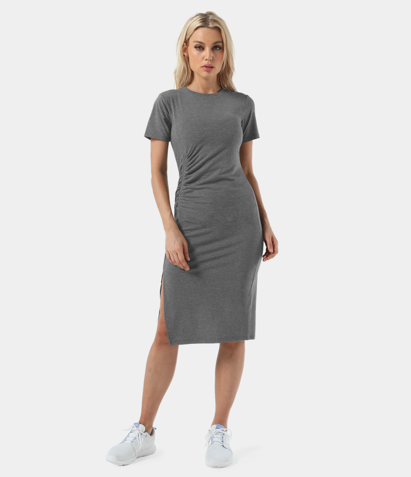 :: Halara Everyday Ruched Split Hem Midi Chill-Wonder Women's Dress Silver Mist | 452673-YFX