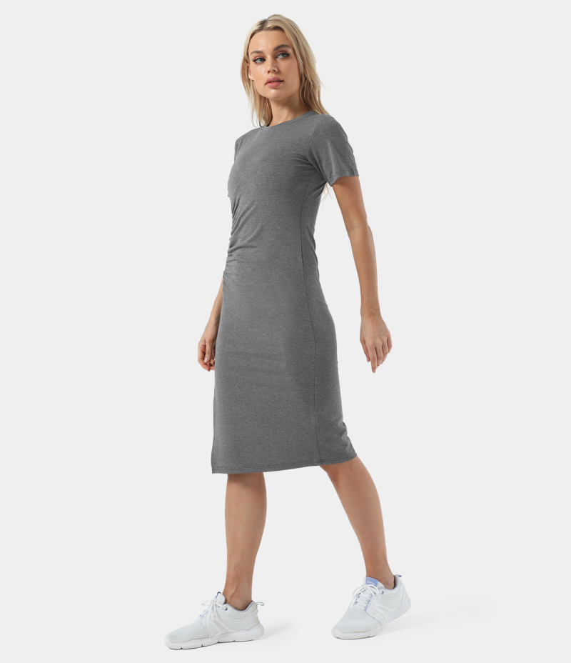 Halara Everyday Ruched Split Hem Midi Chill-Wonder Women's Dress Silver Mist | 452673-YFX