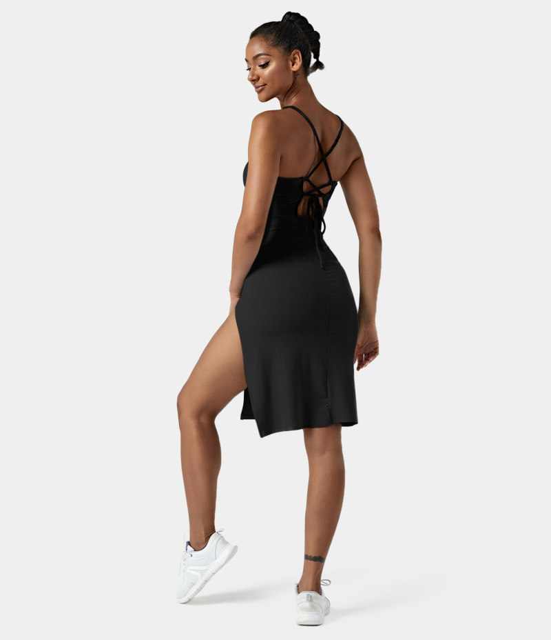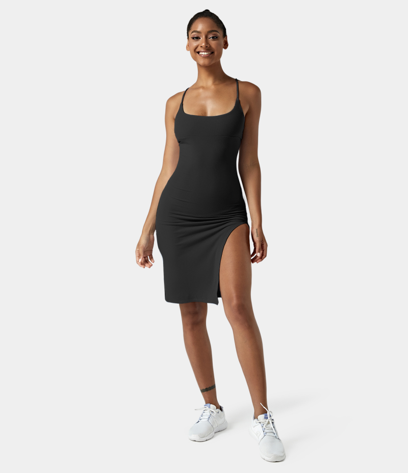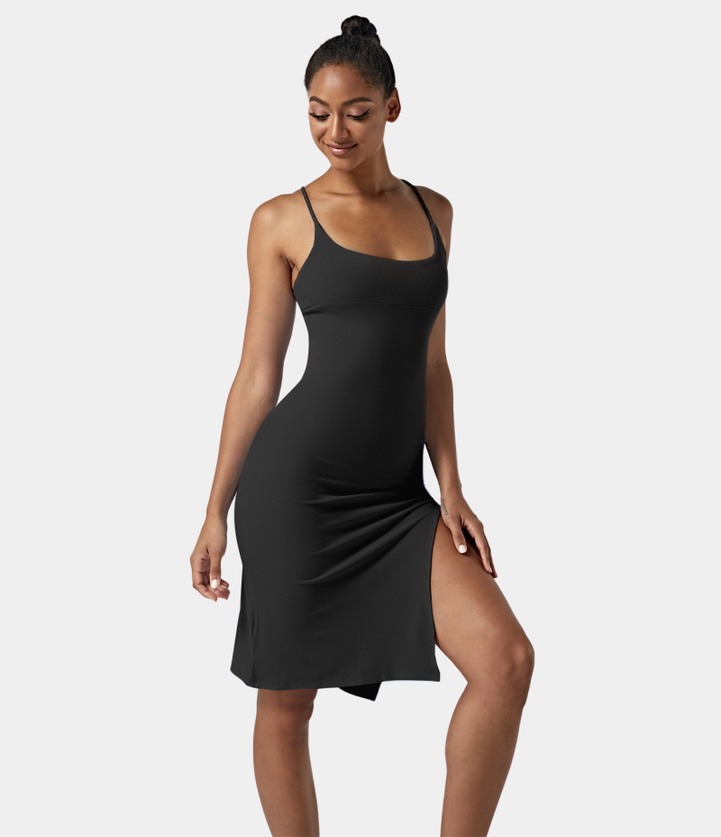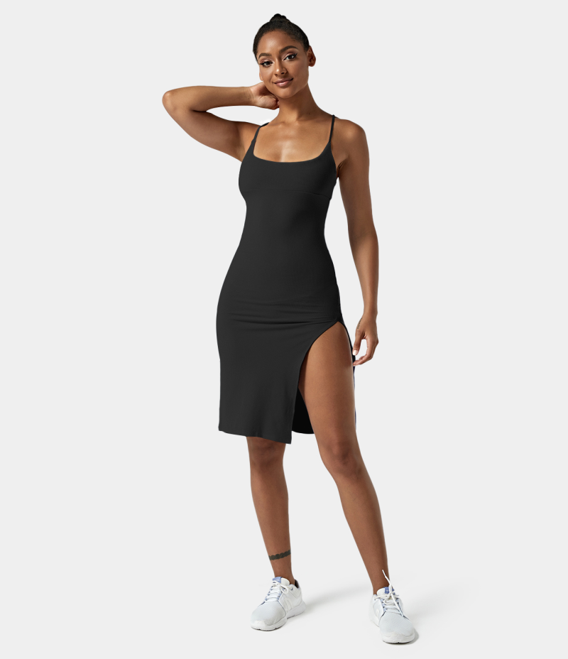:: Halara Everyday Split Strap Bodycon Midi Chill-Sensational Women's Dress Black | 926705-POF