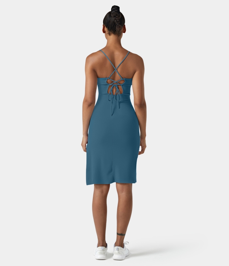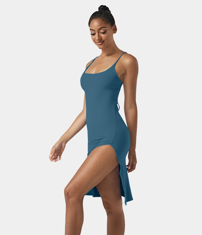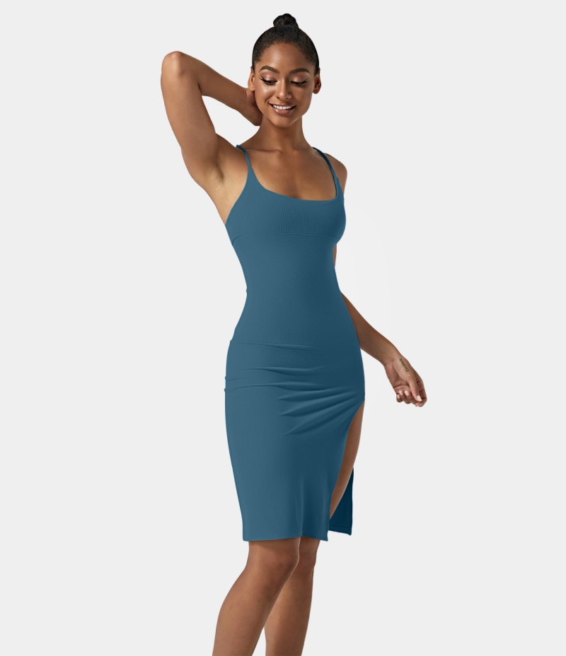 :: Halara Everyday Split Strap Bodycon Midi Chill-Sensational Women's Dress Bluesteel | 954810-BDG