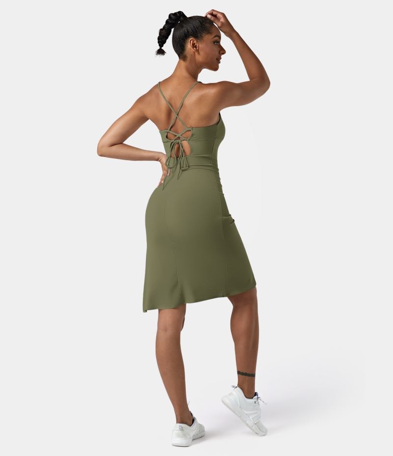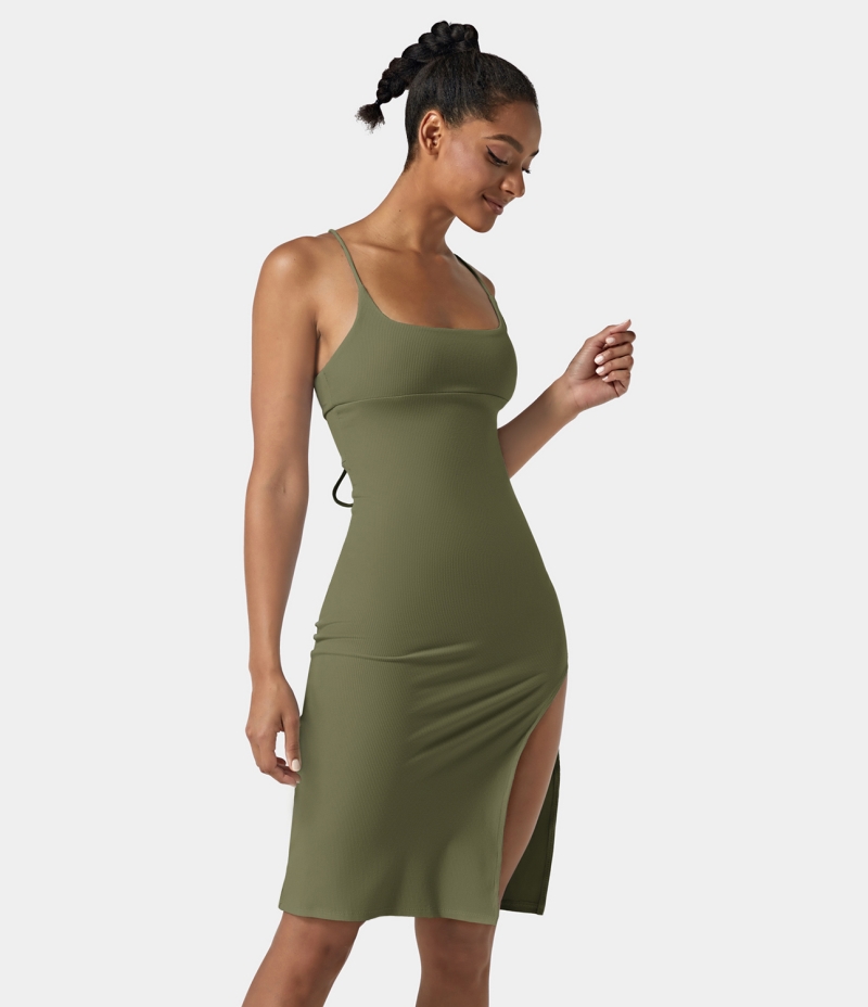 :: Halara Everyday Split Strap Bodycon Midi Chill-Sensational Women's Dress Loden Green | 658497-BJF