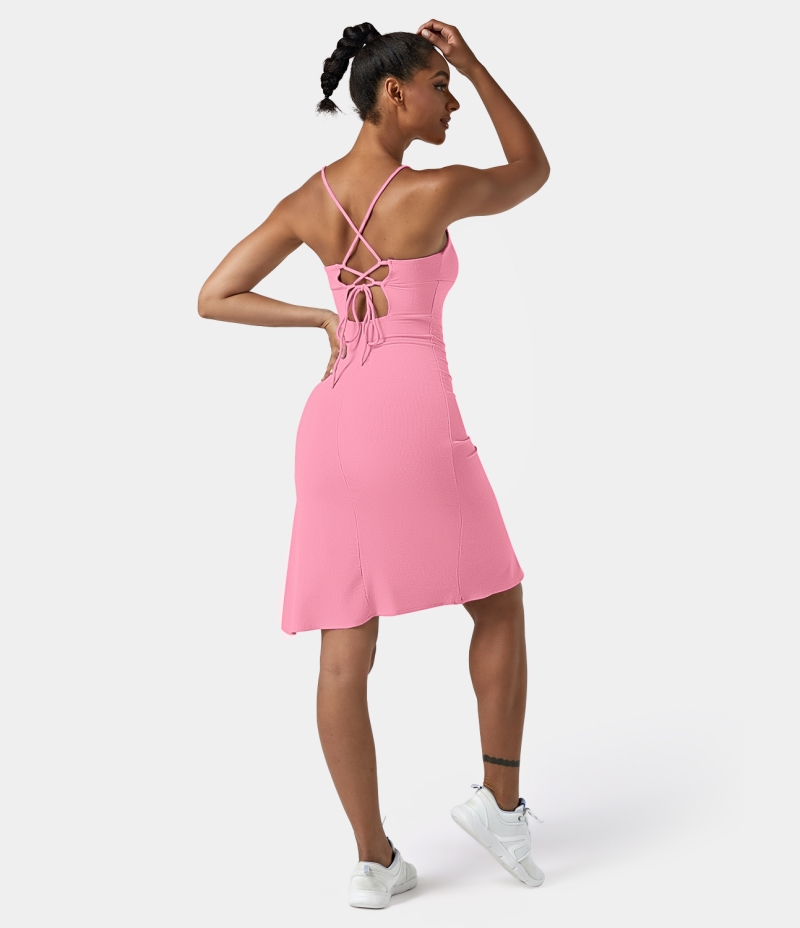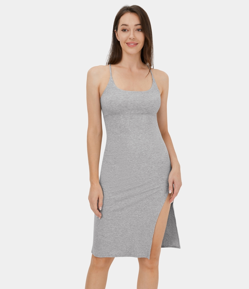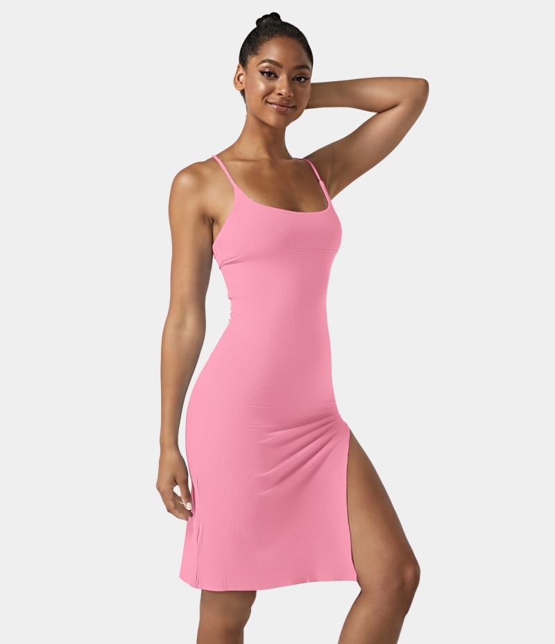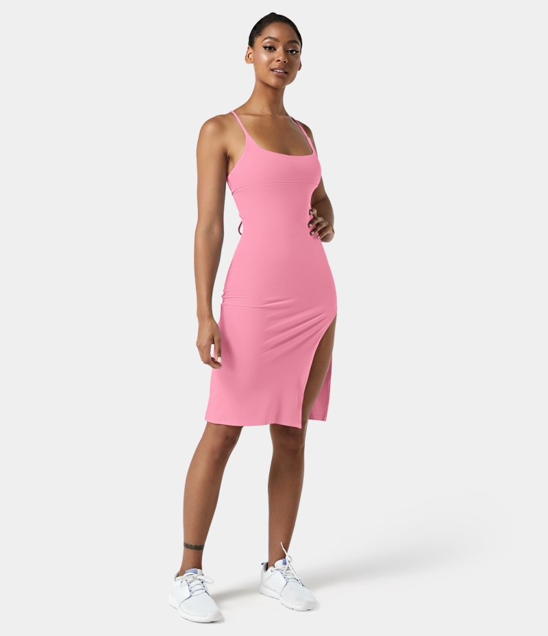 :: Halara Everyday Split Strap Bodycon Midi Chill-Sensational Women's Dress Prism Pink | 298653-ABH
