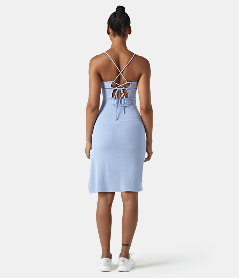 :: Halara Everyday Split Strap Bodycon Midi Chill-Sensational Women's Dress Sky Blue | 460537-LQX