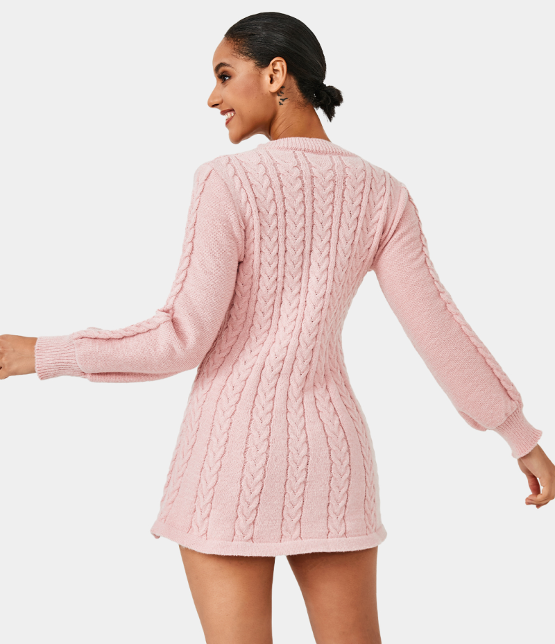 :: Halara Everyday V Neck Long Sleeve Mini Sweater Chill Women's Dress Granite Rose | 938426-UYM