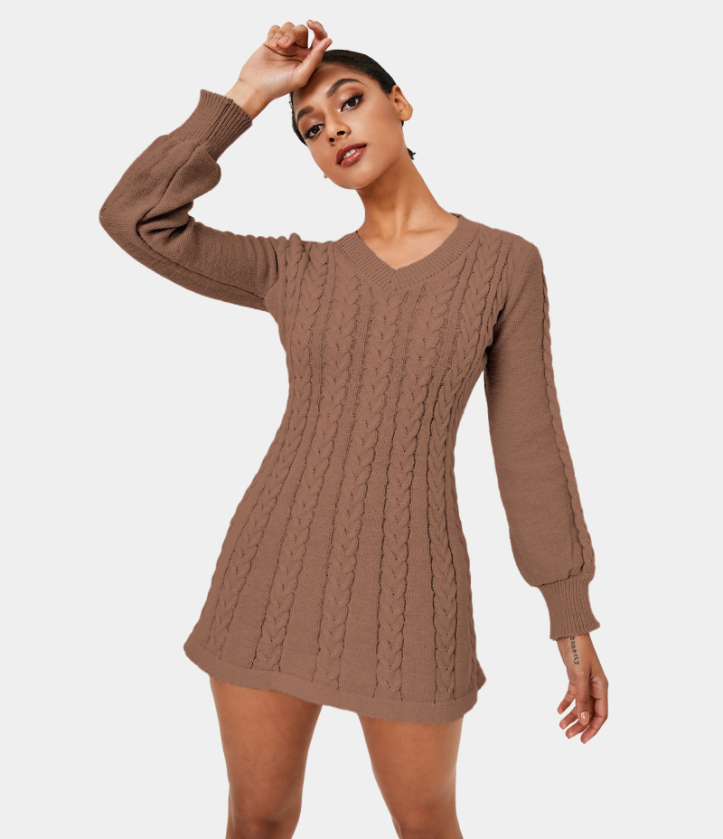 :: Halara Everyday V Neck Long Sleeve Mini Sweater Chill Women's Tops Sandstone | ADHVZJM-21