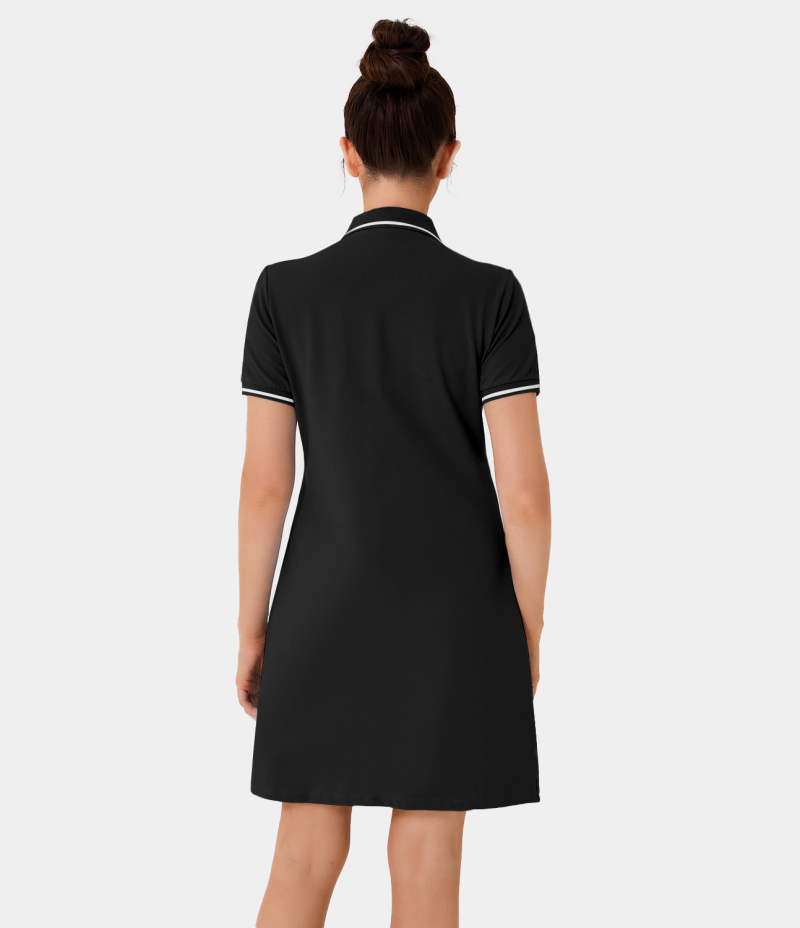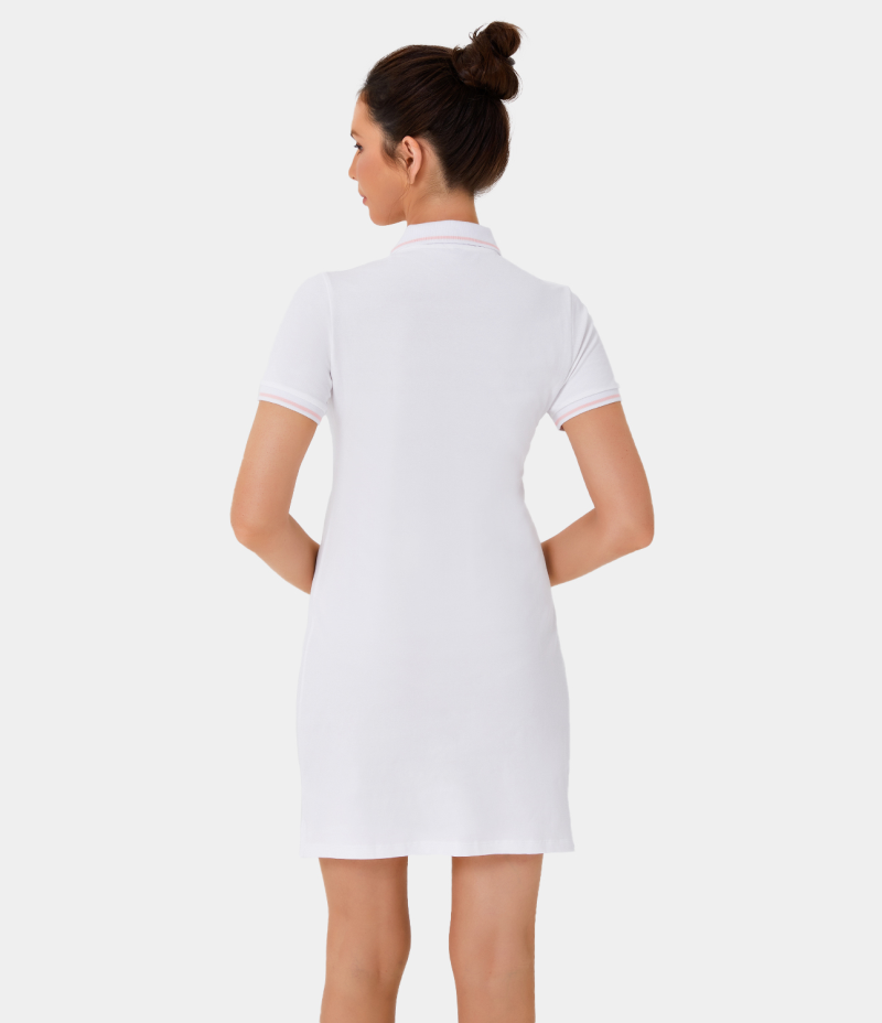 Halara Front Button Contrast Trim Split Hem Polo Women's Dress White | 536140-NAZ