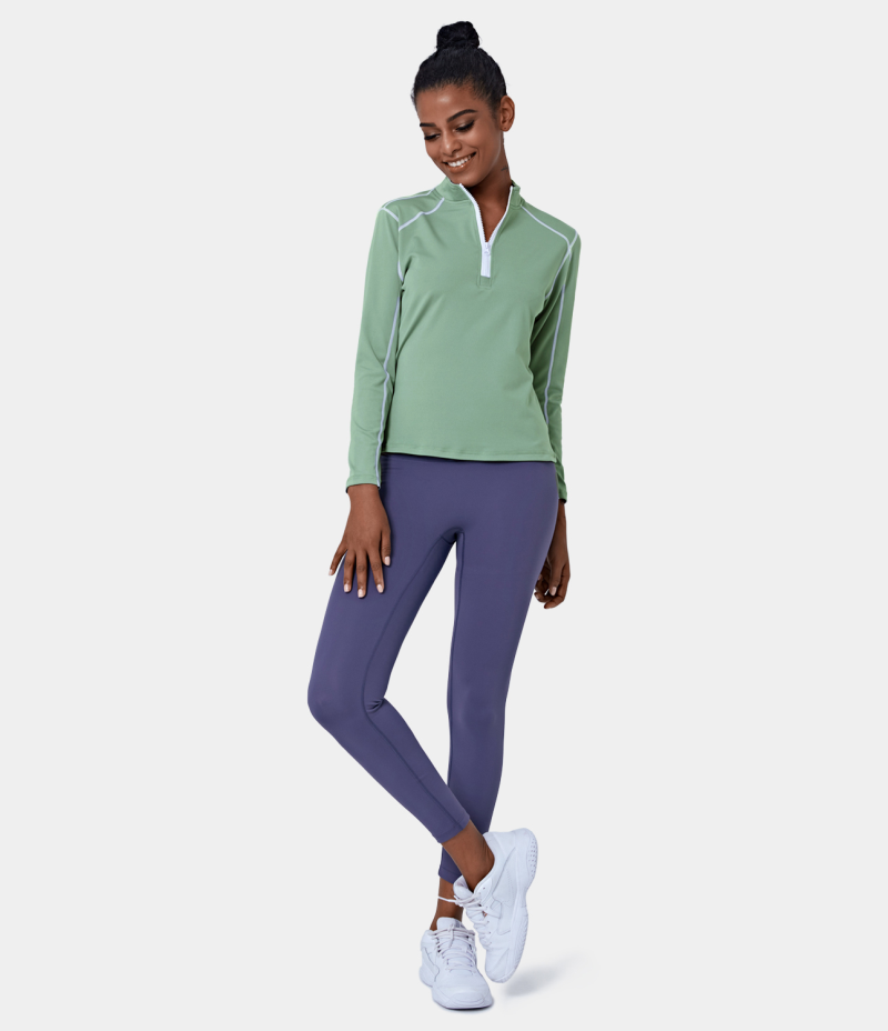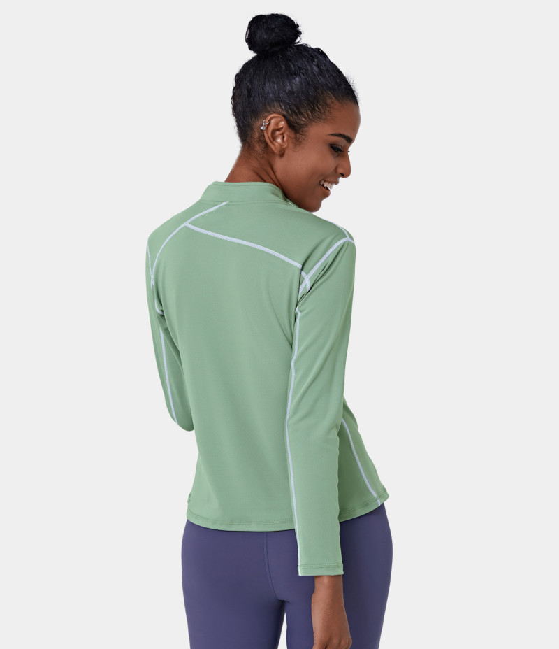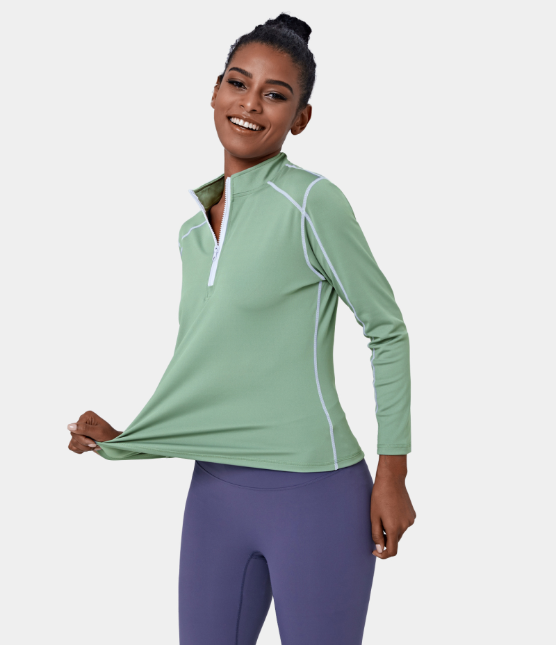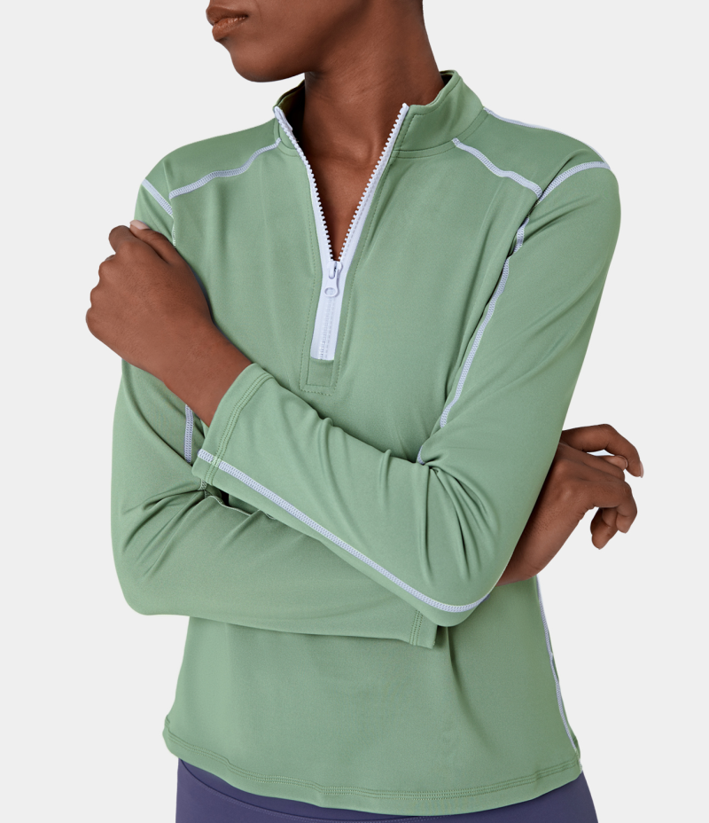 :: Halara Funnel Neck Half Zip Contrast Stitch Sports Women's Tops Seafoam | DTIWHRX-18