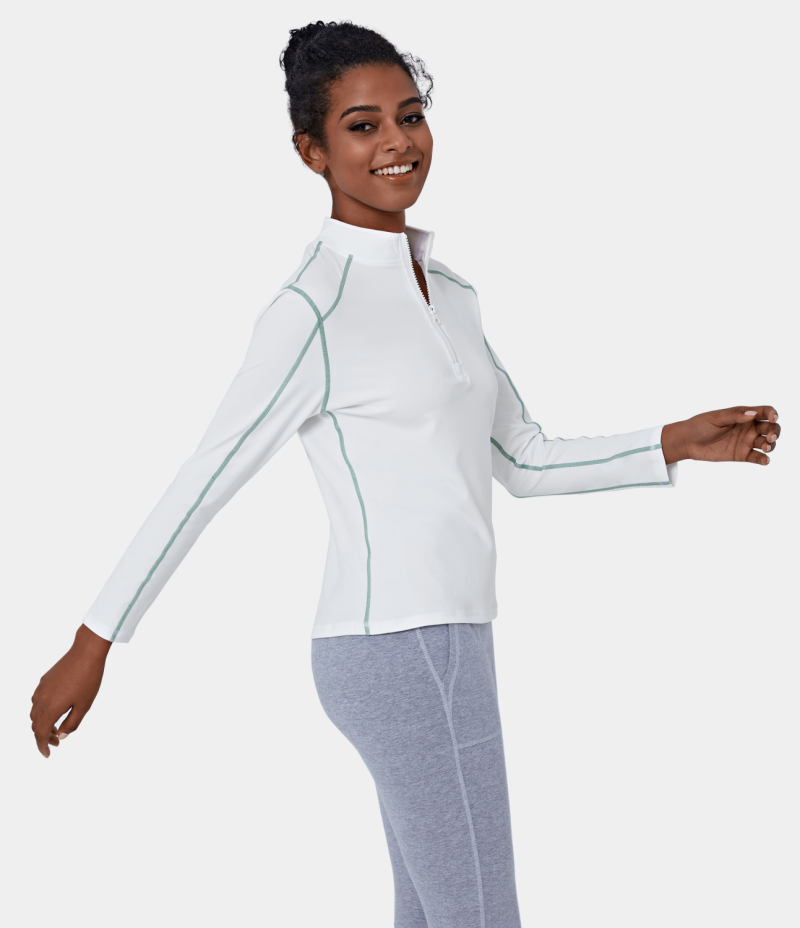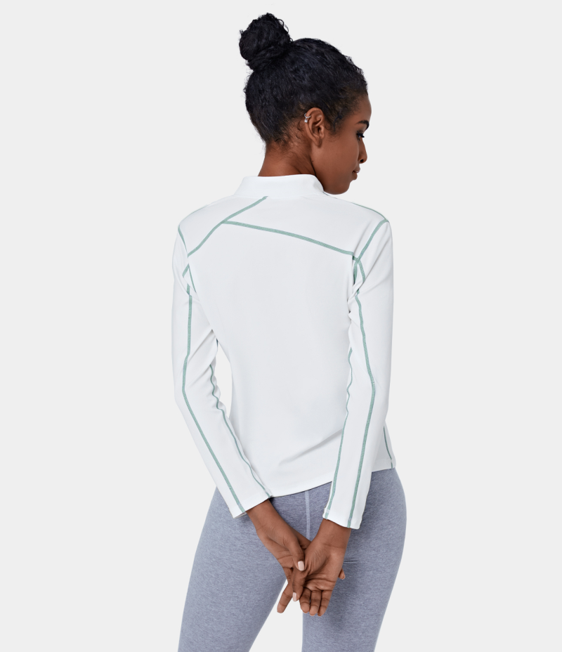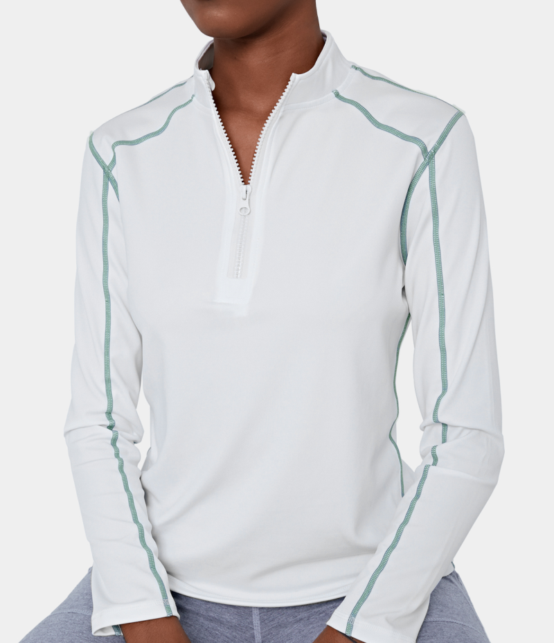 :: Halara Funnel Neck Half Zip Contrast Stitch Sports Women's Tops White | PYZEHOV-92