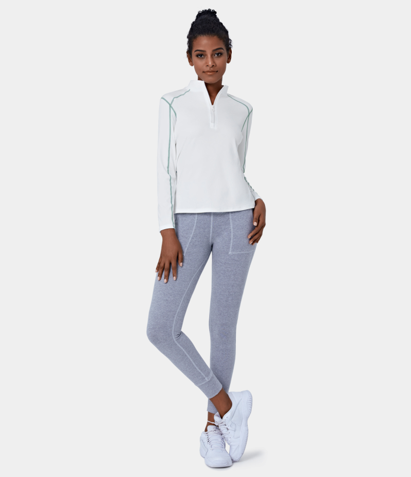 Halara Funnel Neck Half Zip Contrast Stitch Sports Women's Tops White | PYZEHOV-92