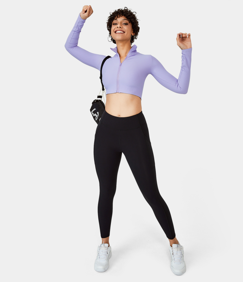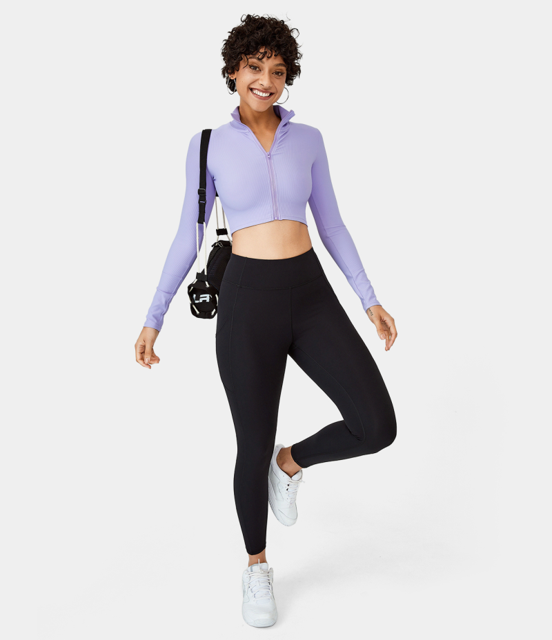 :: Halara Funnel Neck Zipper Cropped Sports Jacket Women's Tops Light Purple | YGBCIAX-18