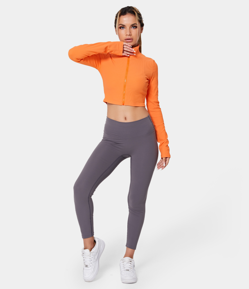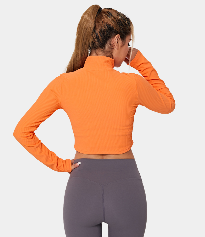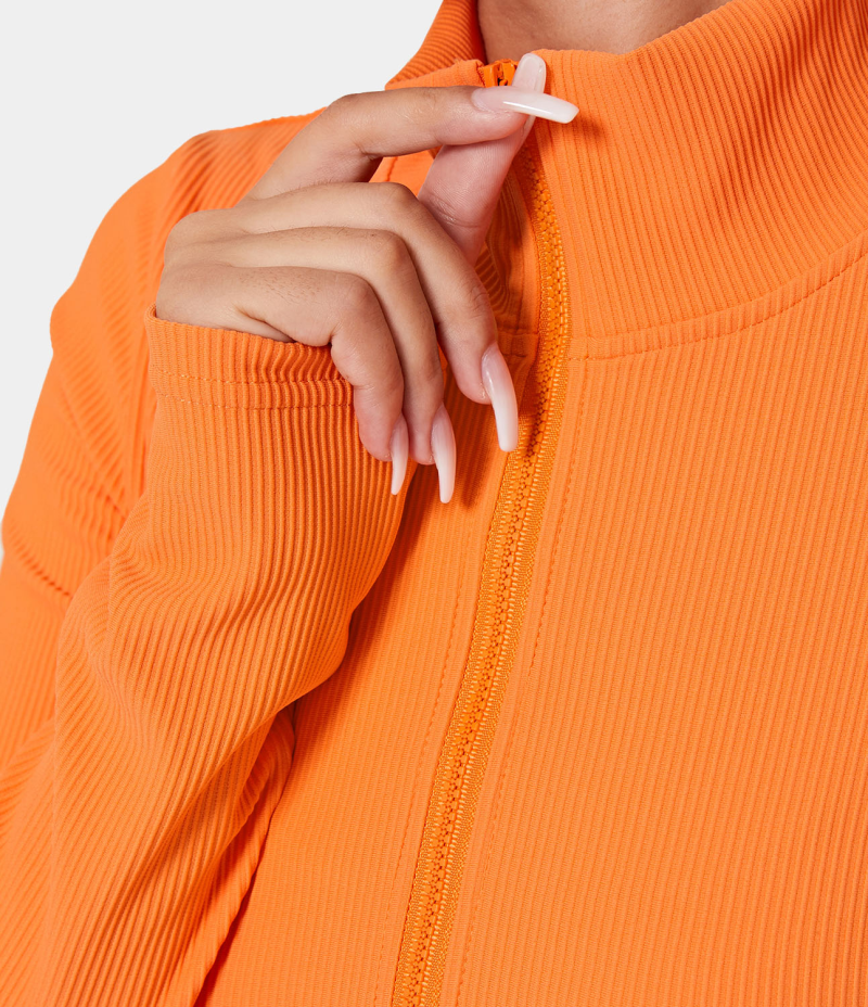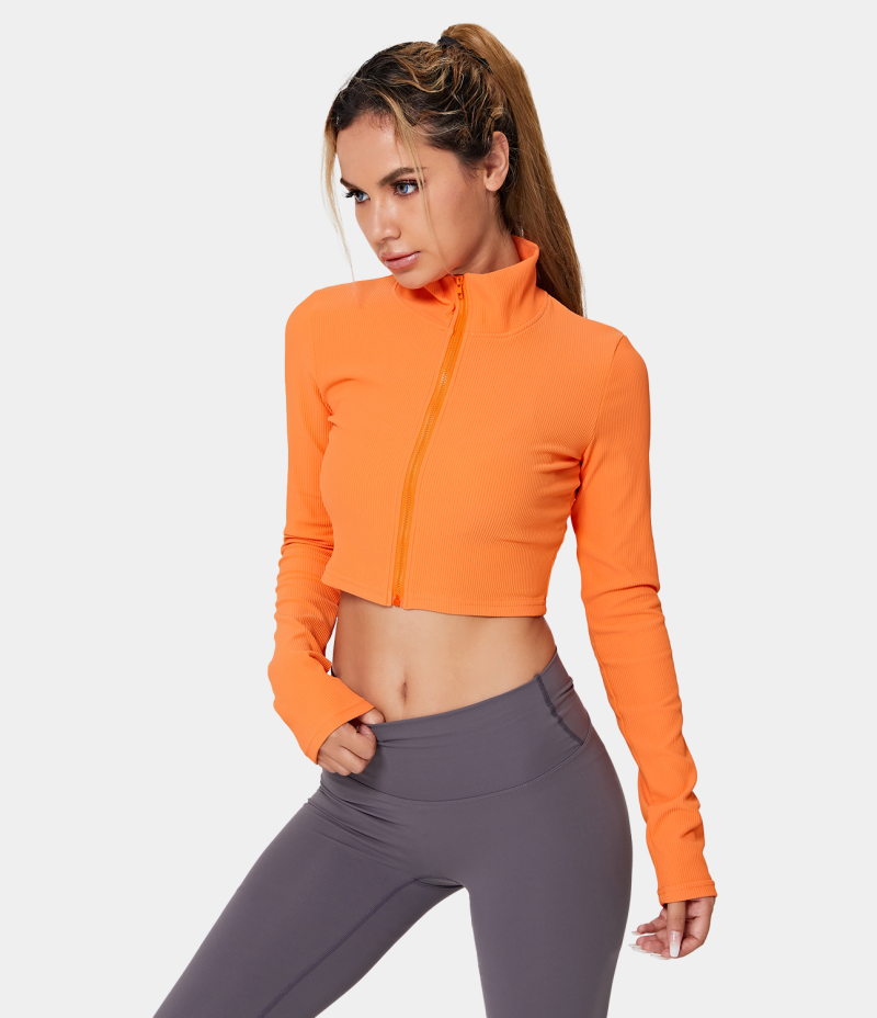 :: Halara Funnel Neck Zipper Cropped Sports Jacket Women's Tops Orange | IWHBLNF-80