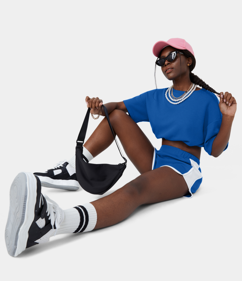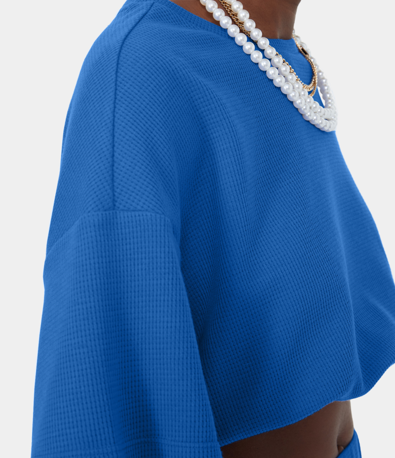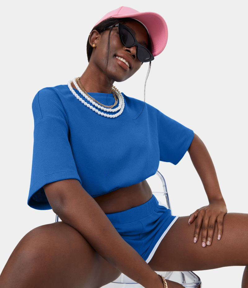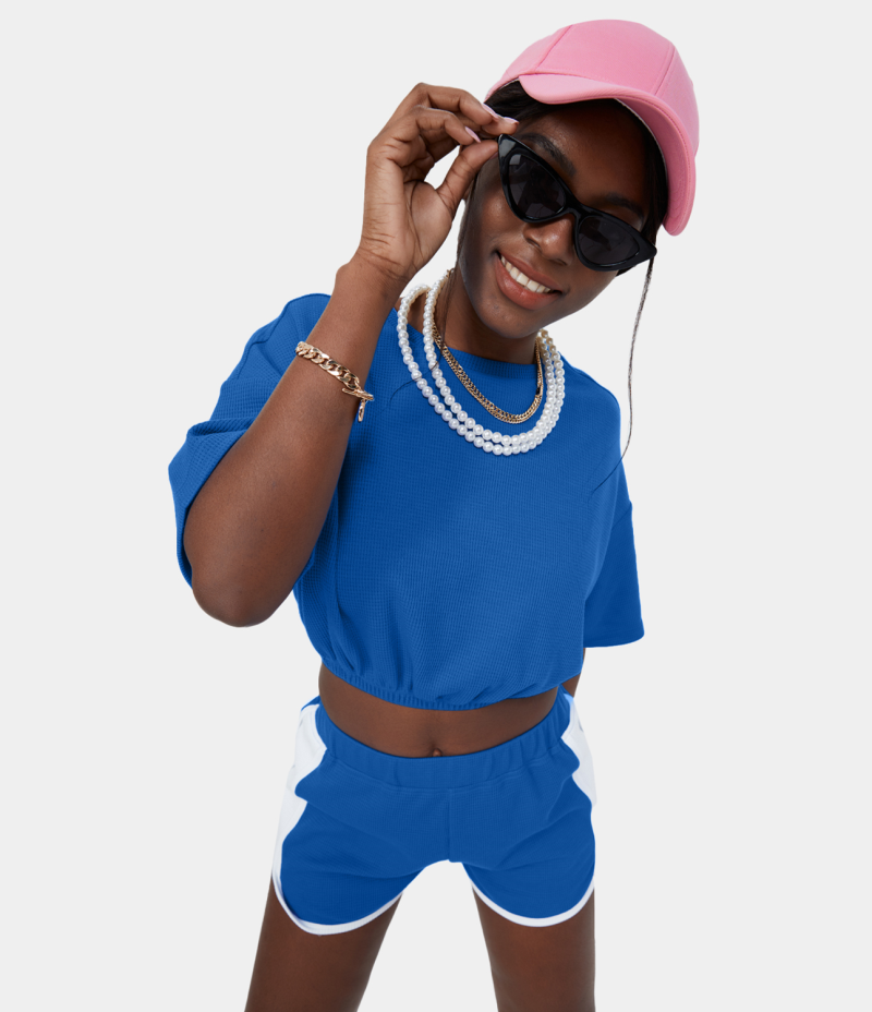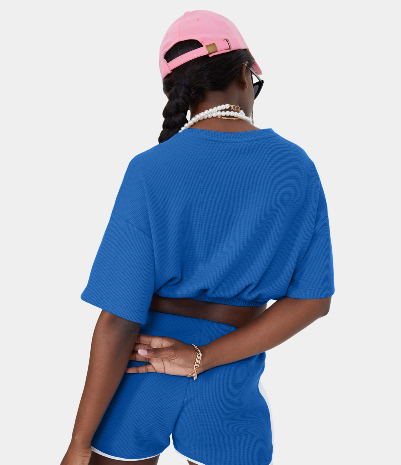 :: Halara Half Sleeve Waffle Oversize Cropped Casual Sweatshirt Women's Tops Super Sonic | XAFBIKG-17