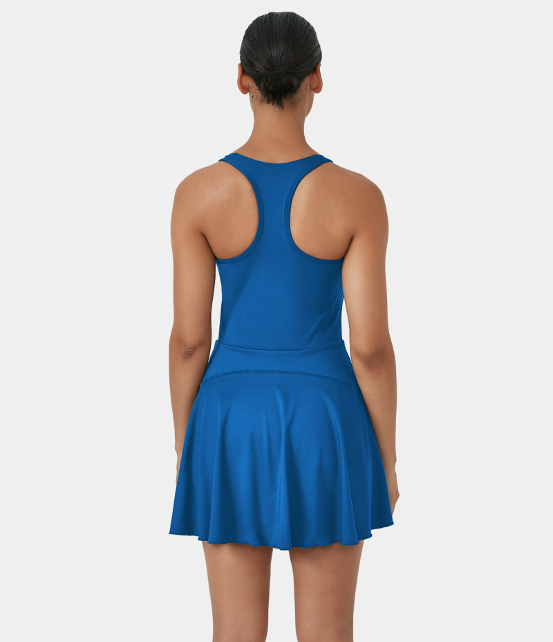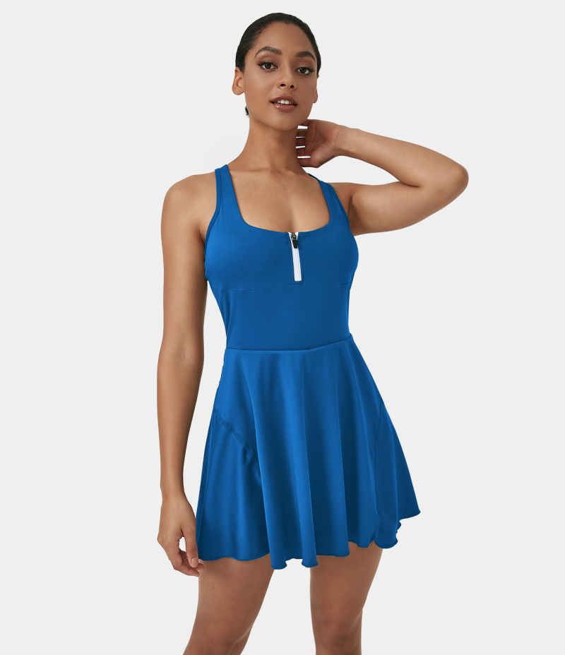 :: Halara Half Zip 2-in-1 Side Pocket Backless Racerback Tennis Women's Dress Blue | 653412-XCB