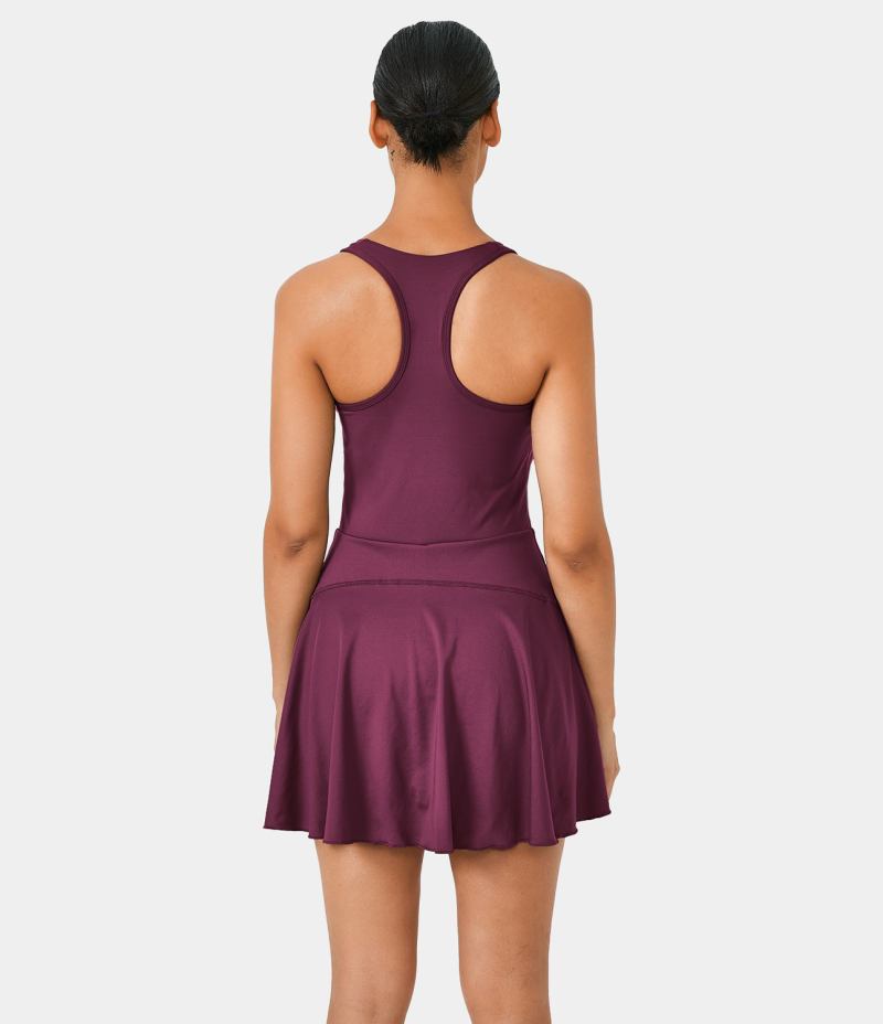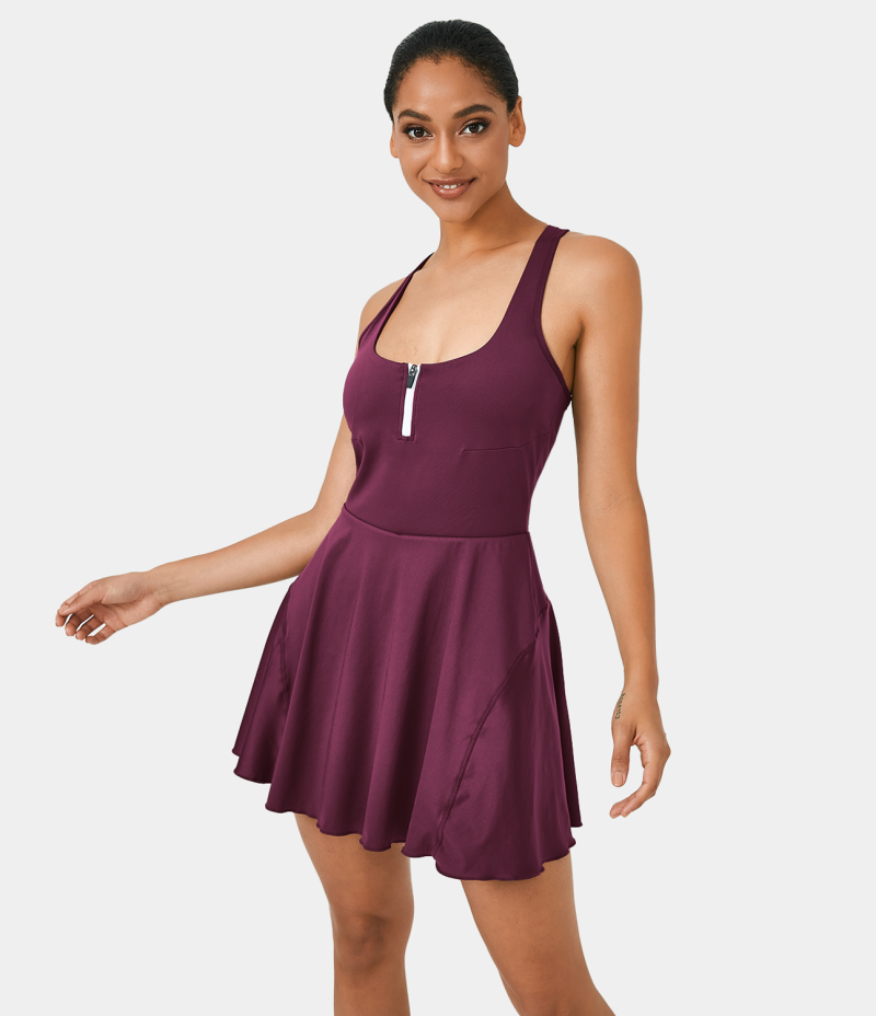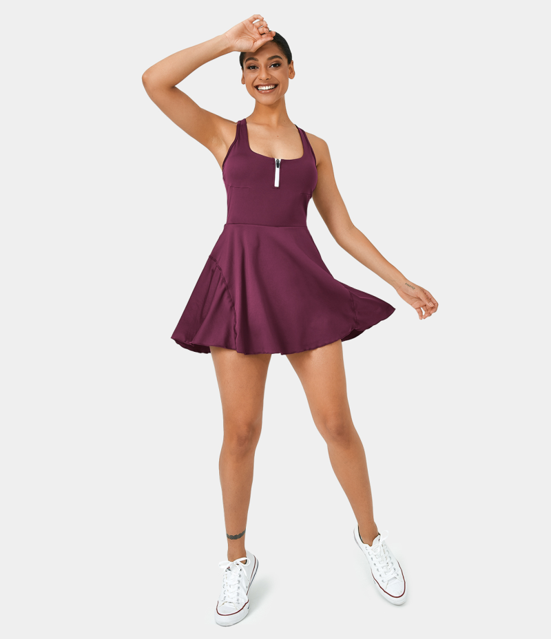 :: Halara Half Zip 2-in-1 Side Pocket Backless Racerback Tennis Women's Dress Plum Pink | 294618-MXU