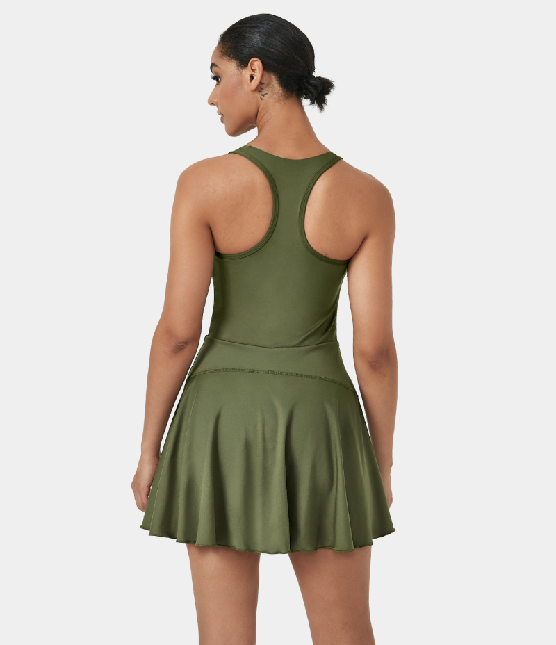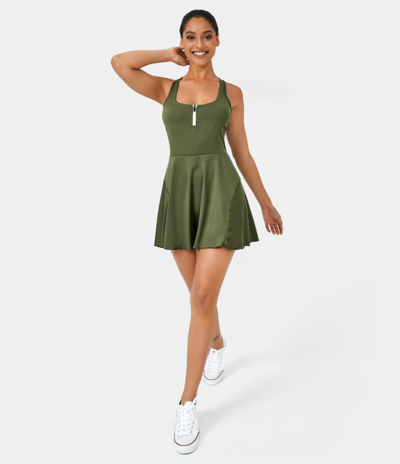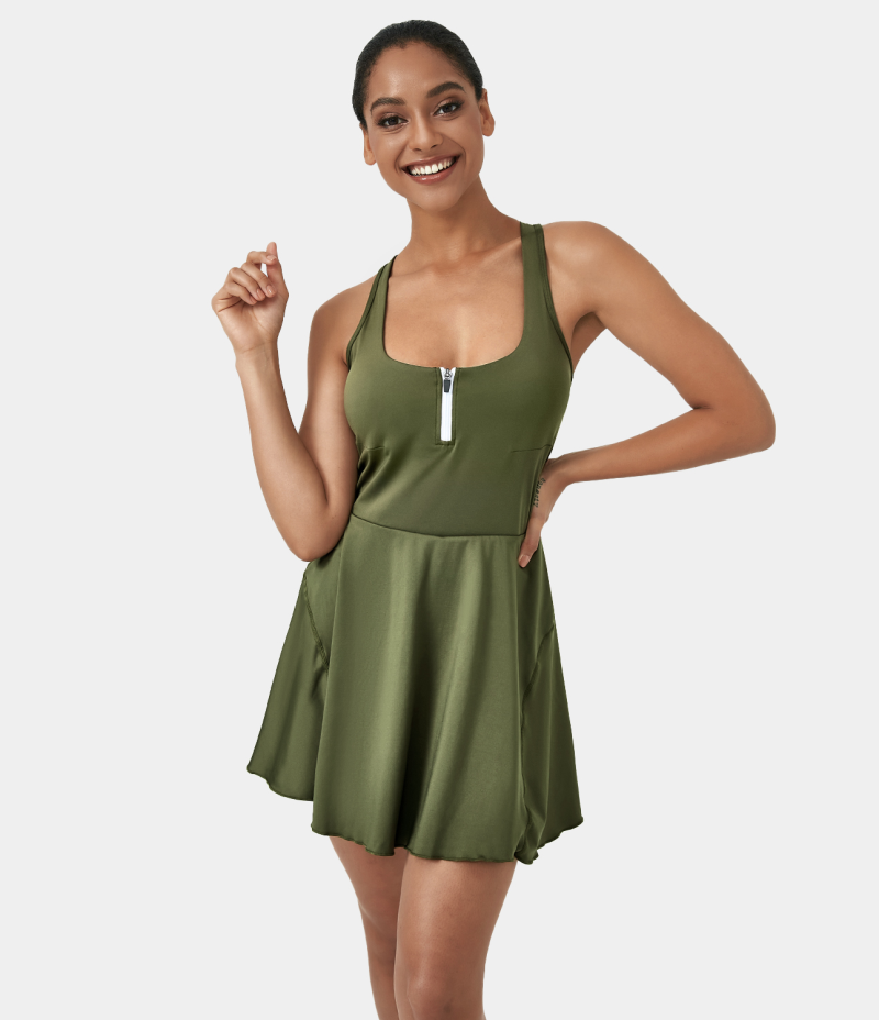 :: Halara Half Zip 2-in-1 Side Pocket Backless Racerback Tennis Women's Dress Sage Green | 306481-JTZ