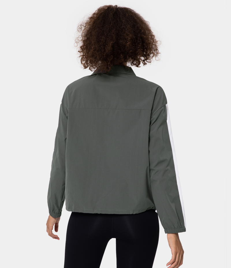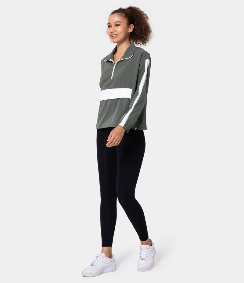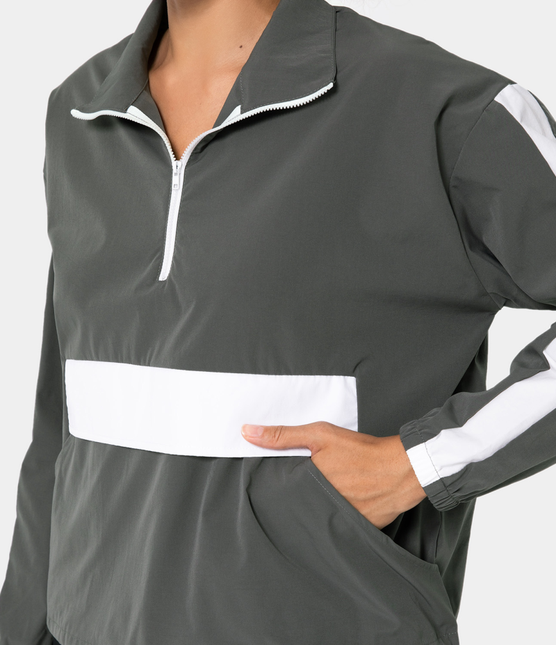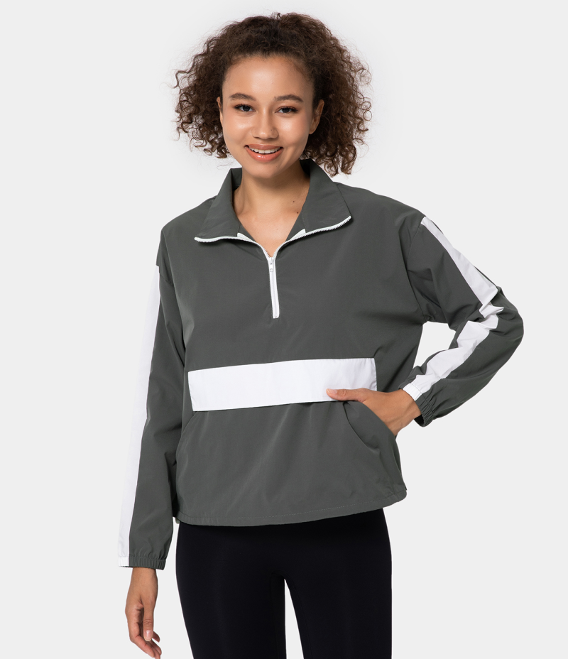 :: Halara Half Zip Color Block Pocket Jacket Women's Tops Dark Grey | RJLVPHY-06