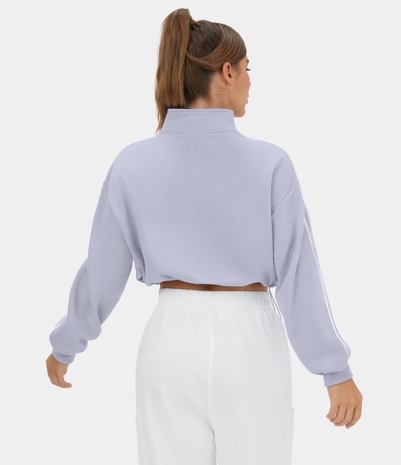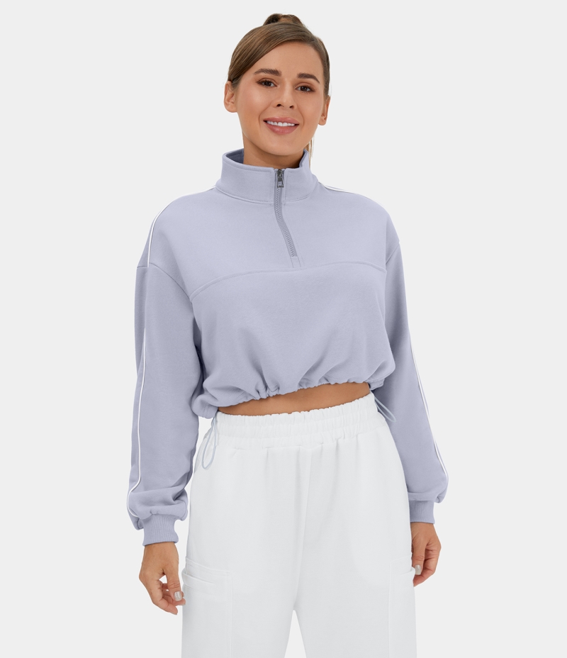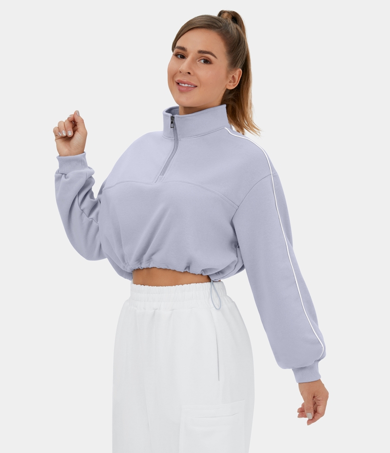 :: Halara Half Zip Drawstring Contrast Trim Cropped Casual Sweatshirt Women's Tops Lavender Blue | SKWFLVD-51