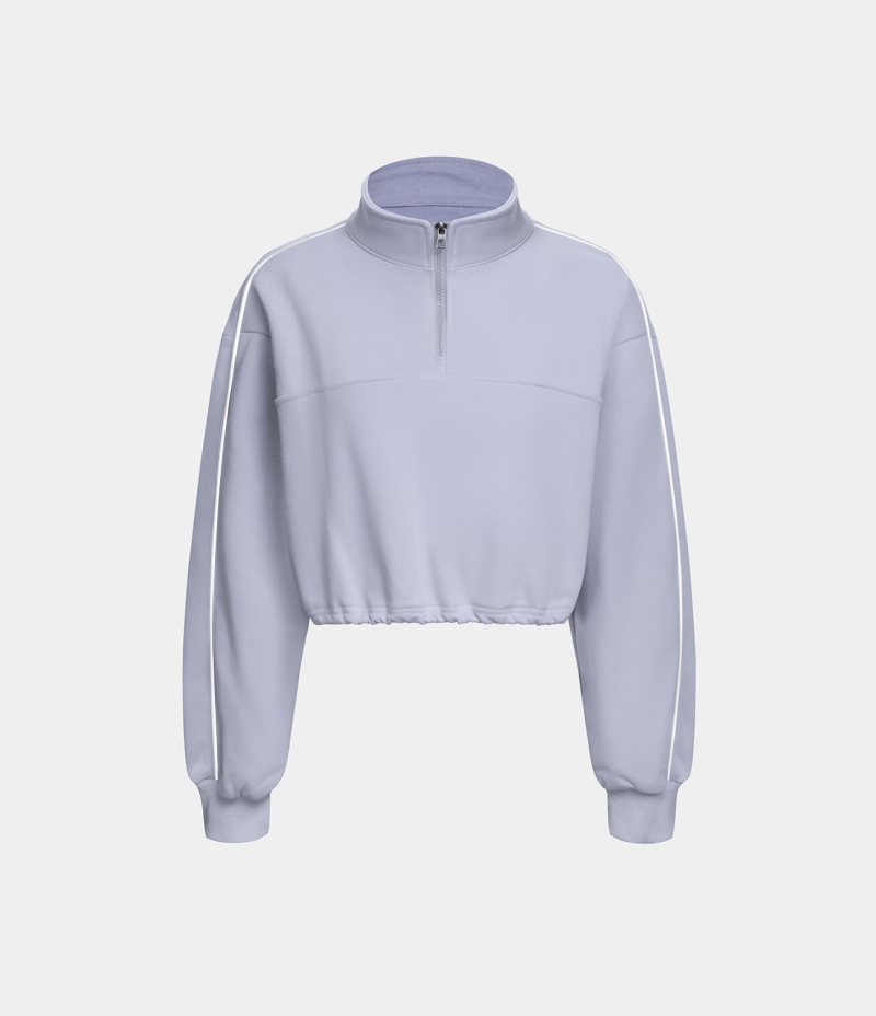 Halara Half Zip Drawstring Contrast Trim Cropped Casual Sweatshirt Women's Tops Lavender Blue | SKWFLVD-51