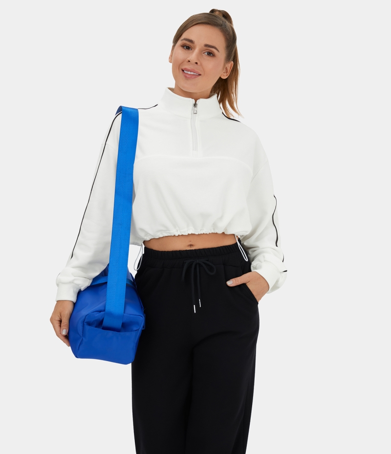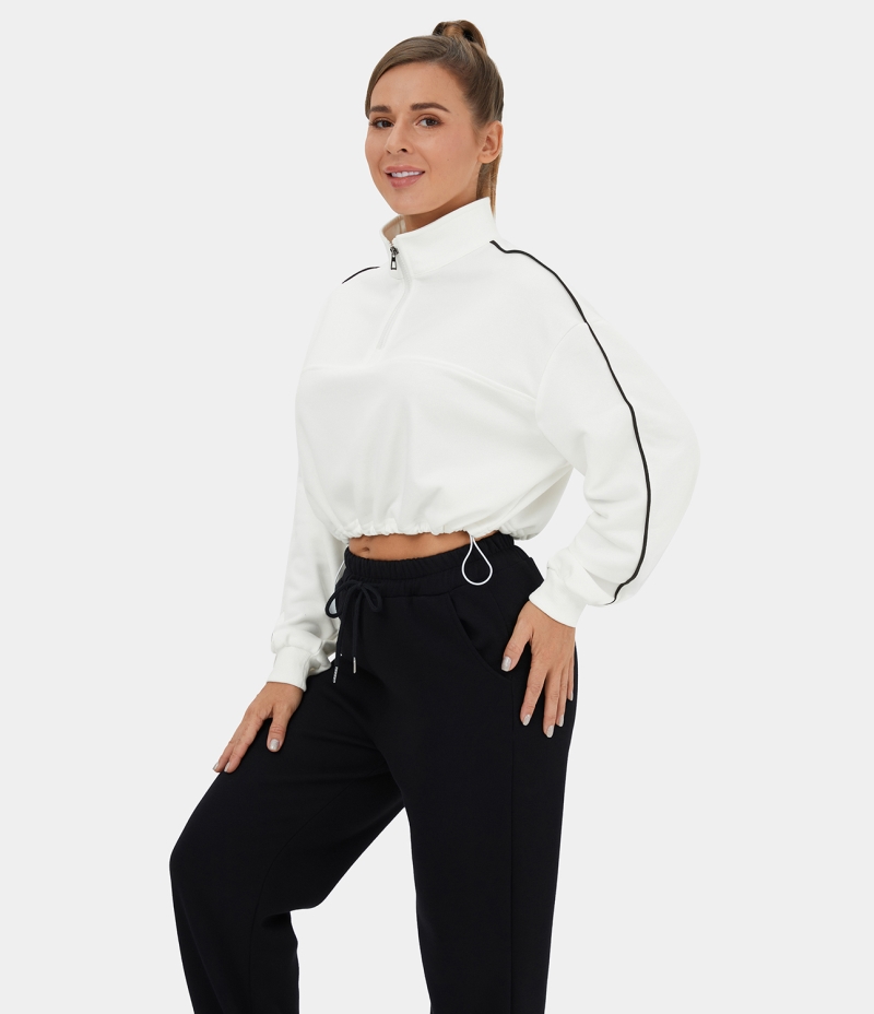 :: Halara Half Zip Drawstring Contrast Trim Cropped Casual Sweatshirt Women's Tops White | VWBOZIP-93