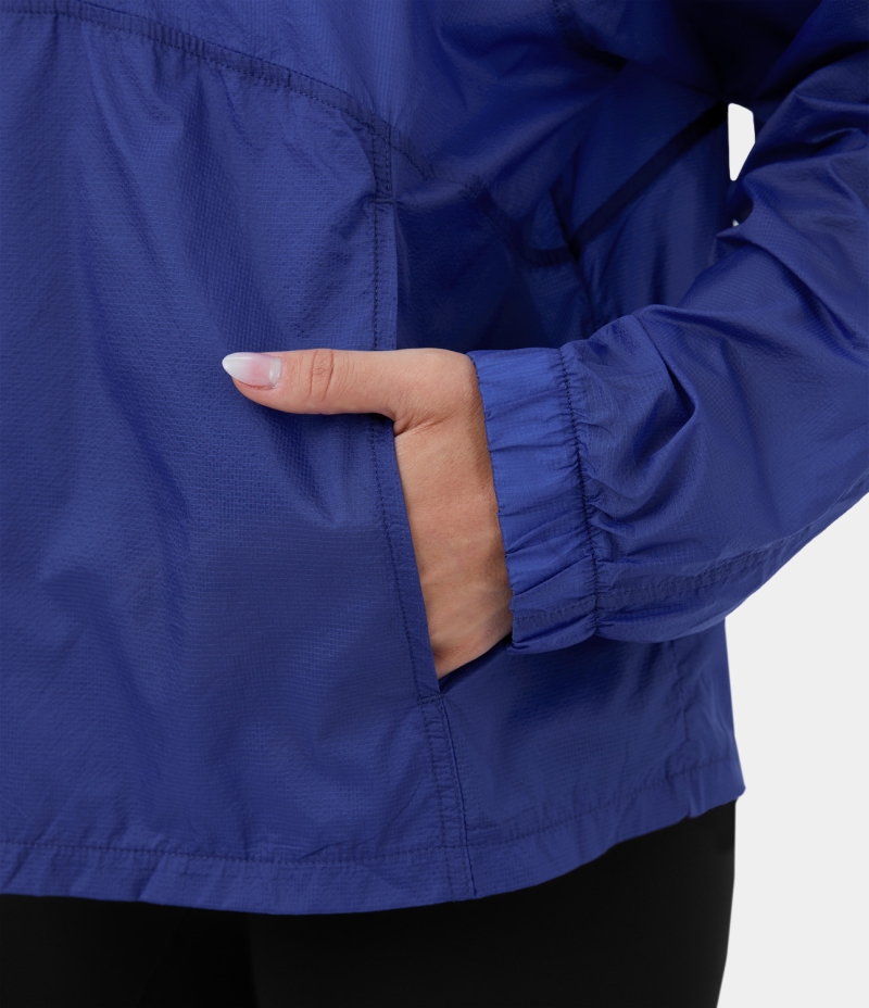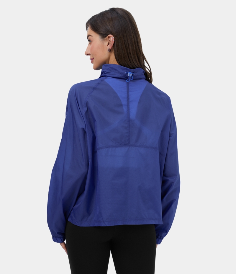 :: Halara Half Zip Drawstring Kangaroo Pocket Sheer Casual Jacket Women's Tops Bluing | AZGCYNI-63