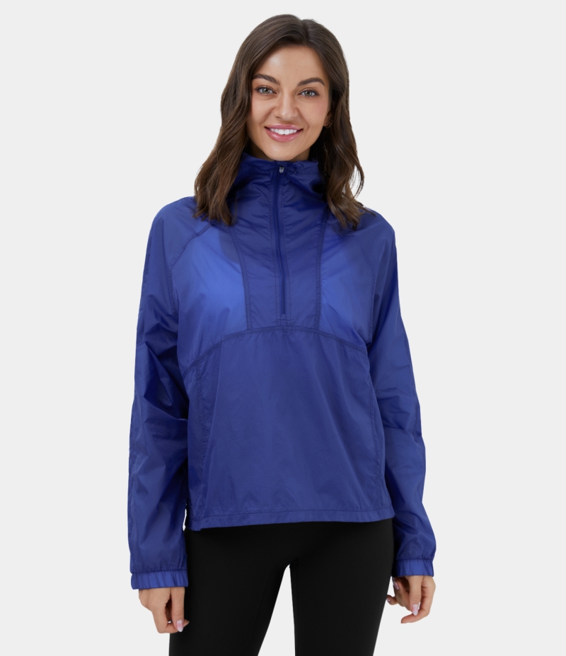 Halara Half Zip Drawstring Kangaroo Pocket Sheer Casual Jacket Women's Tops Bluing | AZGCYNI-63