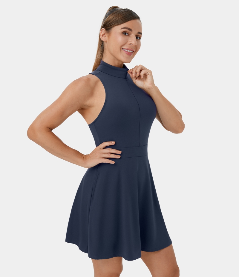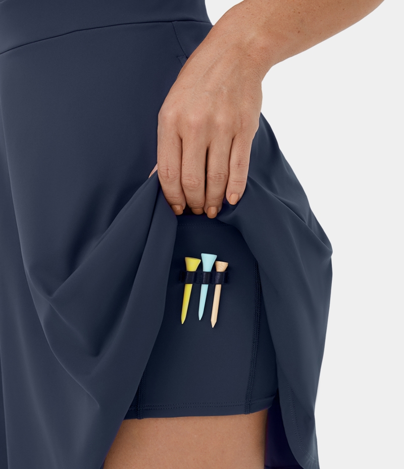 :: Halara Half Zip Racerback Side Pocket 2-in-1 Golf-Golf Tee Pocket Women's Dress Insignia Blue | 506384-IYA