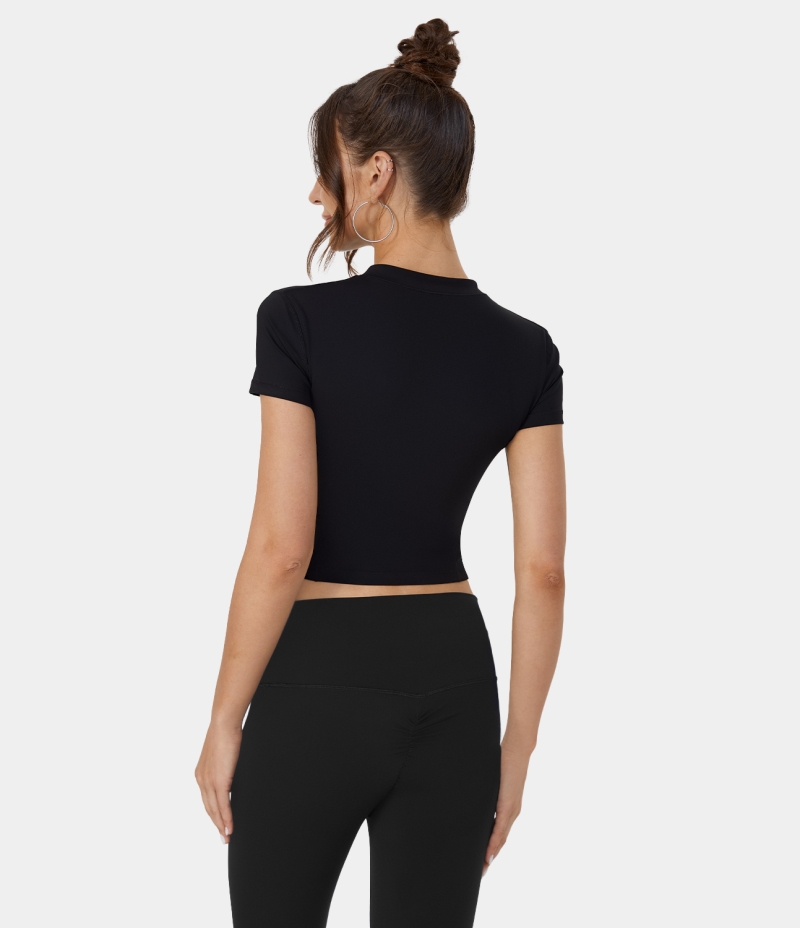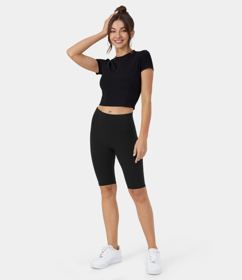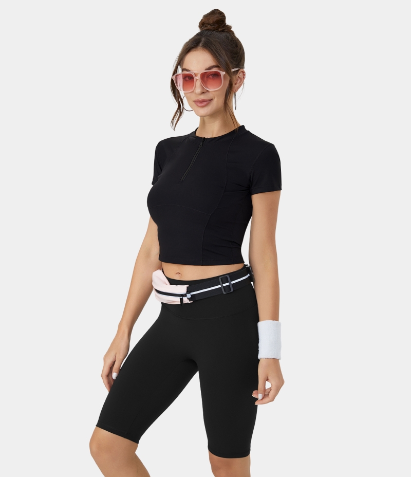 Halara Half Zip Short Sleeve Cropped Golf Sports Women's Tops Black | FBOHIPW-79