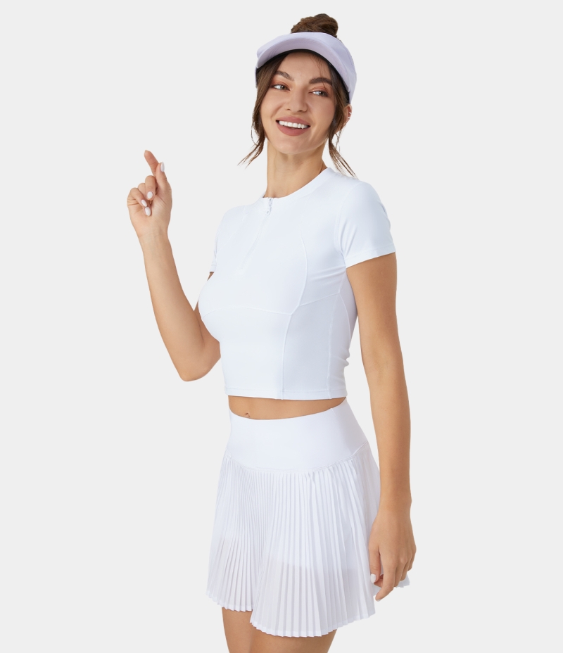 :: Halara Half Zip Short Sleeve Cropped Golf Sports Women's Tops White | XUAVGYS-78