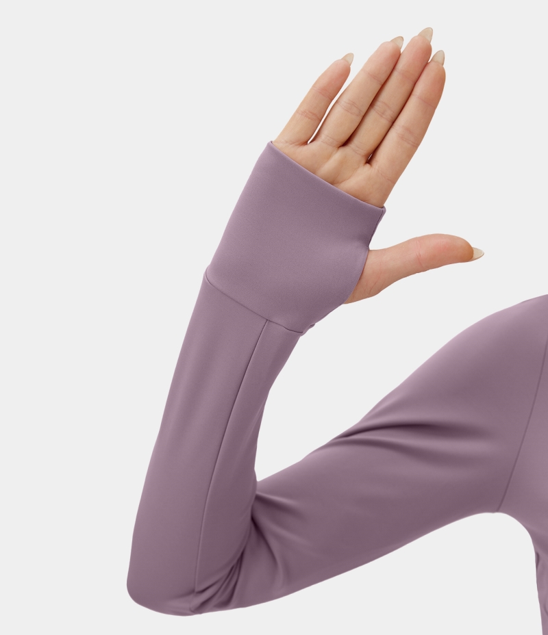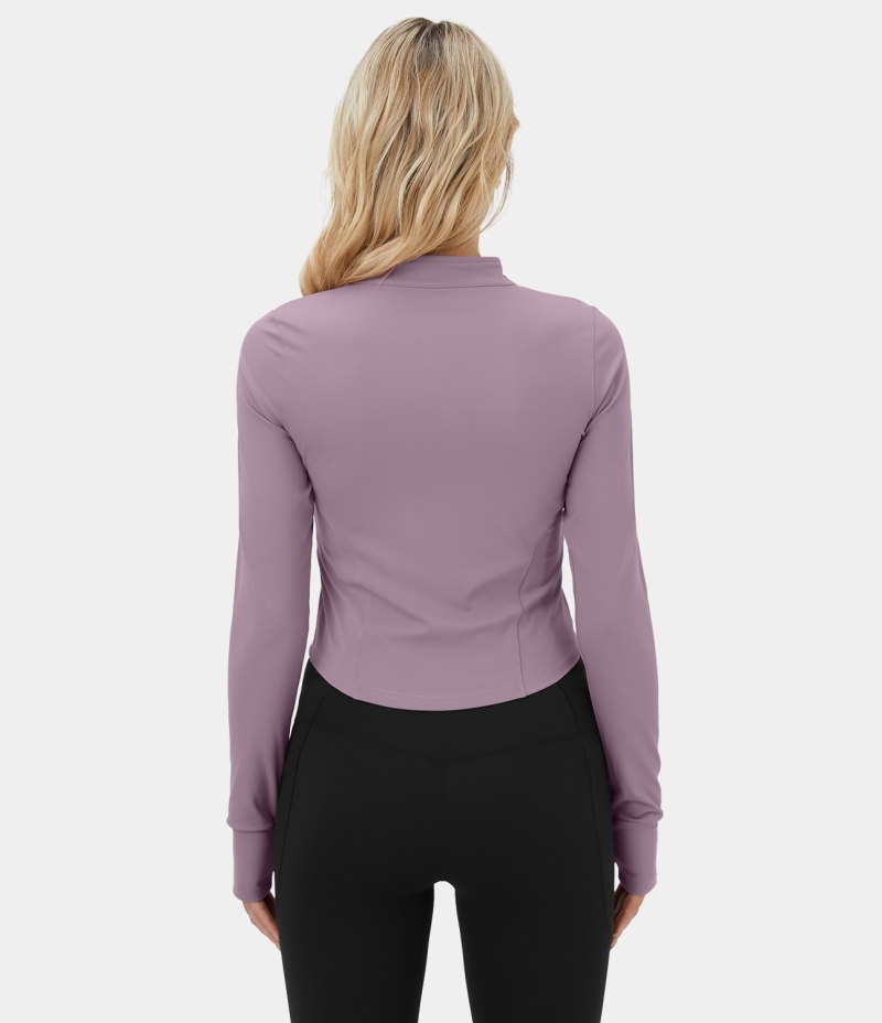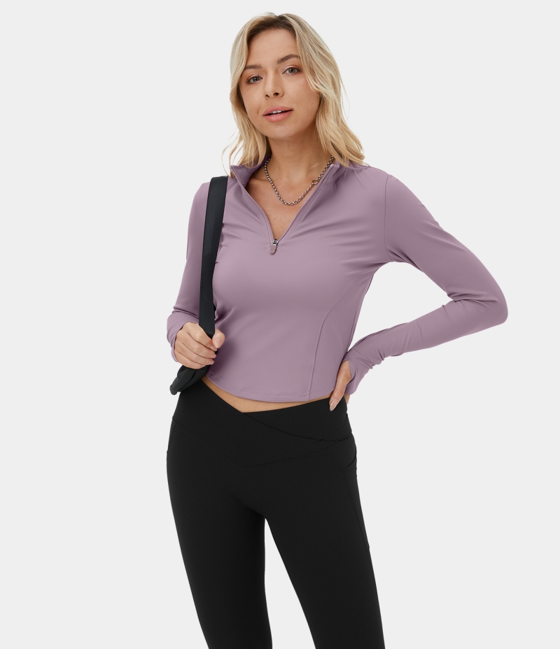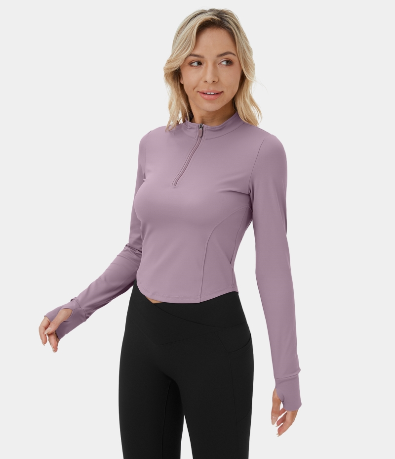 :: Halara Half Zip Thumb Hole Curved Hem Cropped Yoga Sports Women's Tops Fair Orchid | QLYAJET-89
