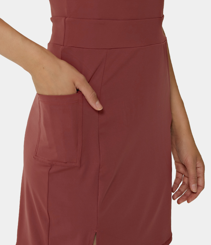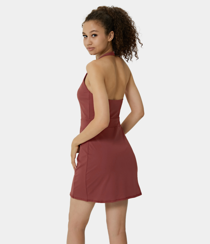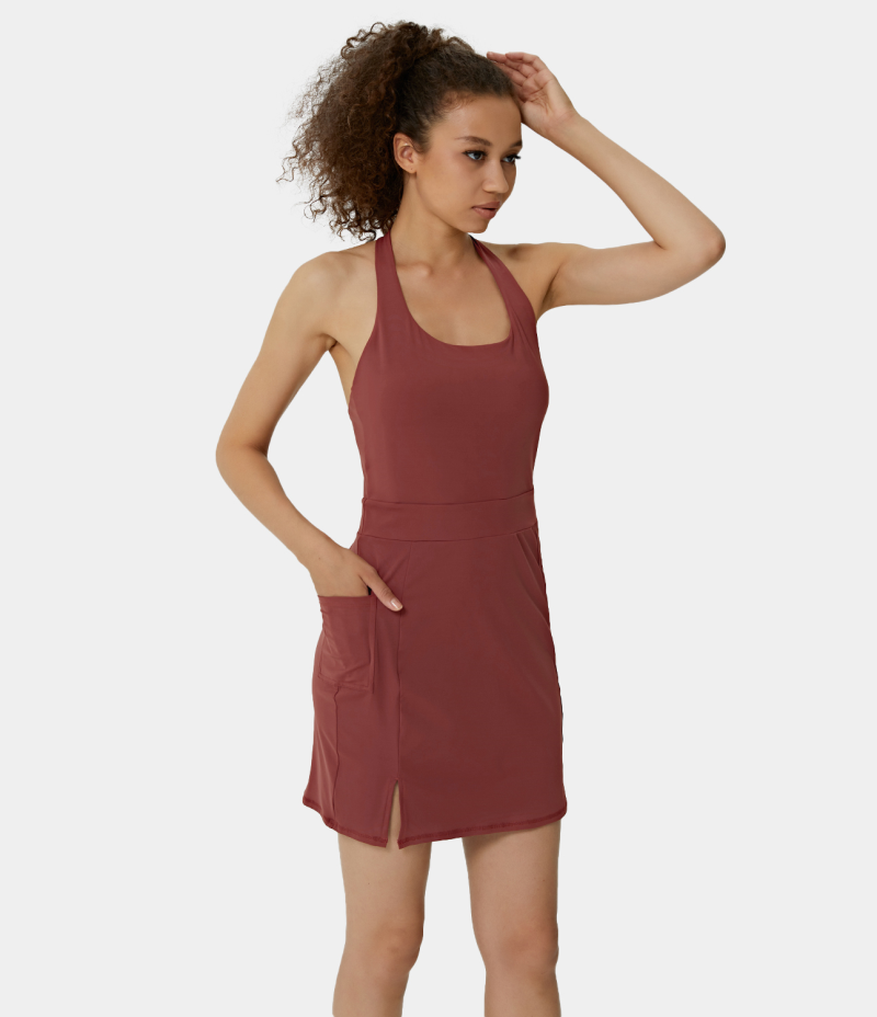 Halara Halter Backless Side Pocket Split Hem Mini Women's Dress Auburn Red | 238670-WHT