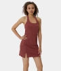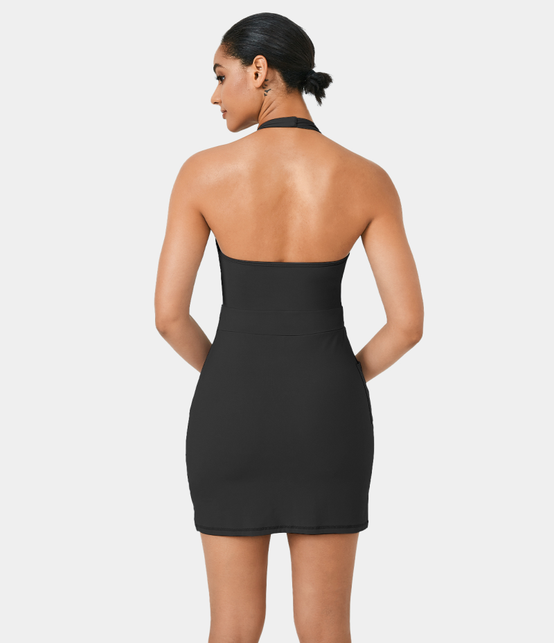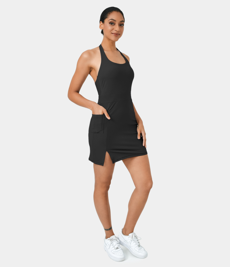 :: Halara Halter Backless Side Pocket Split Hem Mini Women's Dress Black | 769428-JEW