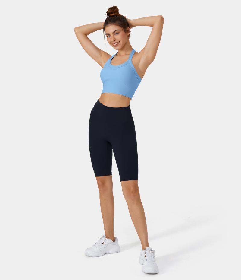 :: Halara Halter Backless Solid Yoga Sports Bra Women's Tops Bright Blue | AYMTRHX-85