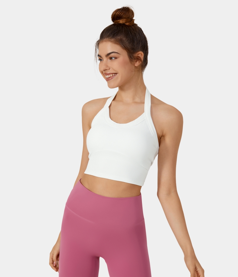:: Halara Halter Backless Solid Yoga Sports Bra Women's Tops White | ELMZANX-29