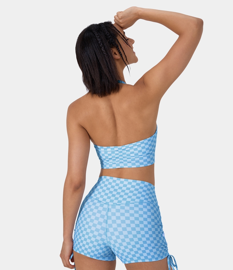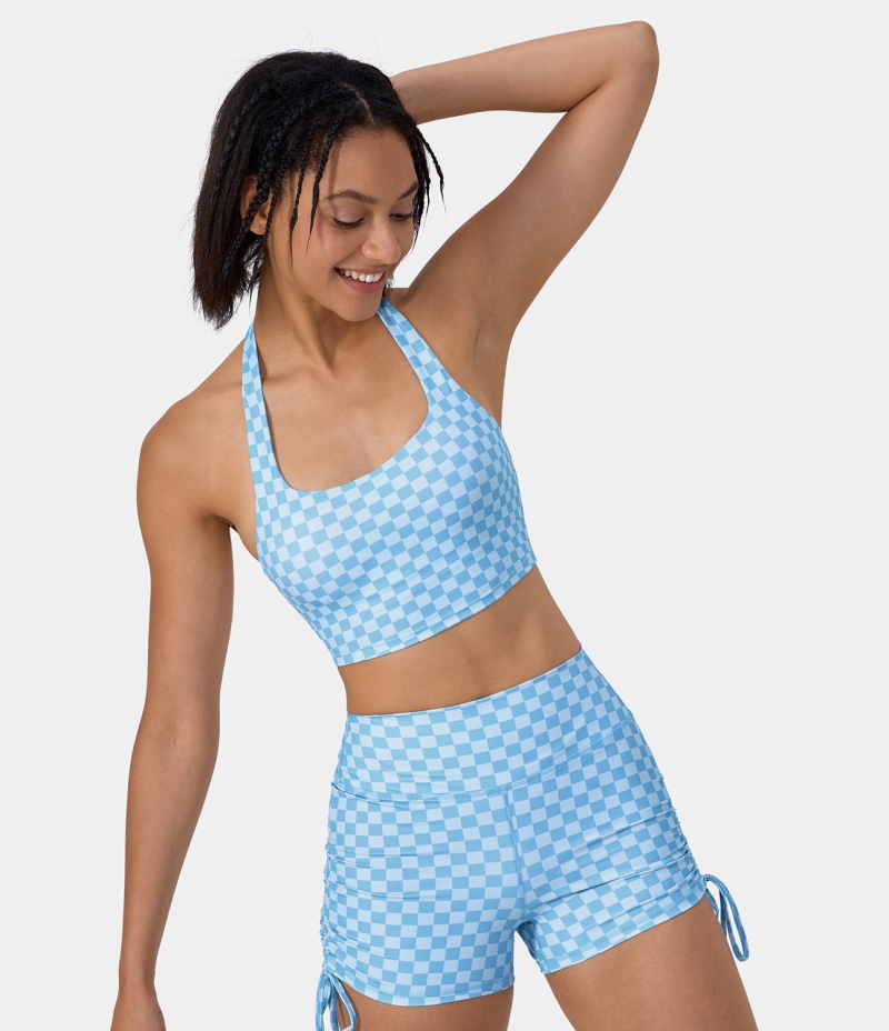 Halara Halter Neck Backless Plaid Cropped Yoga Tank Women's Tops Dutch Canal | MDIGAWS-17
