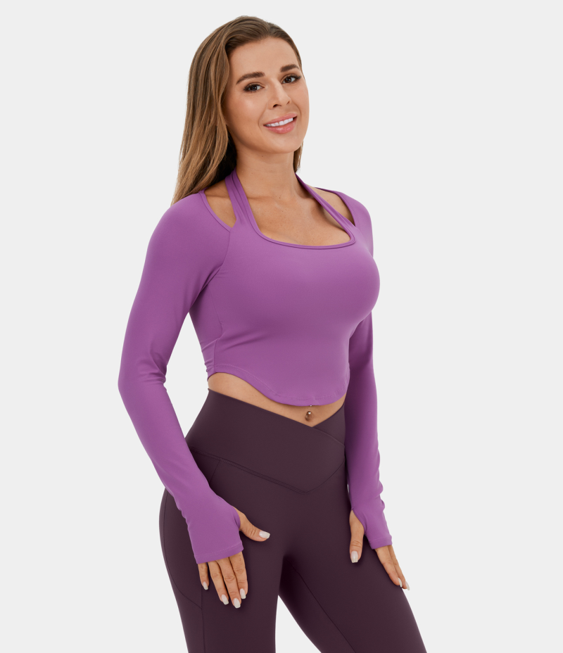 :: Halara Halter Thumb Hole Asymmetric Hem Cropped Yoga Sports Women's Tops Liatris | VEUPQNJ-10