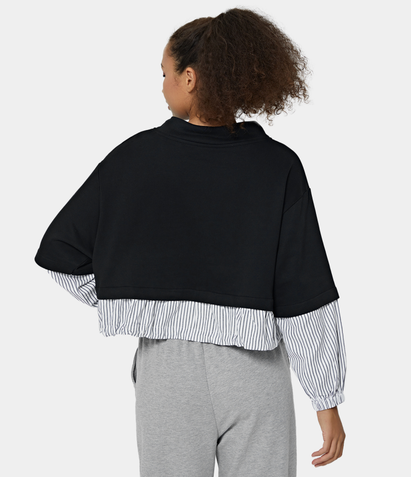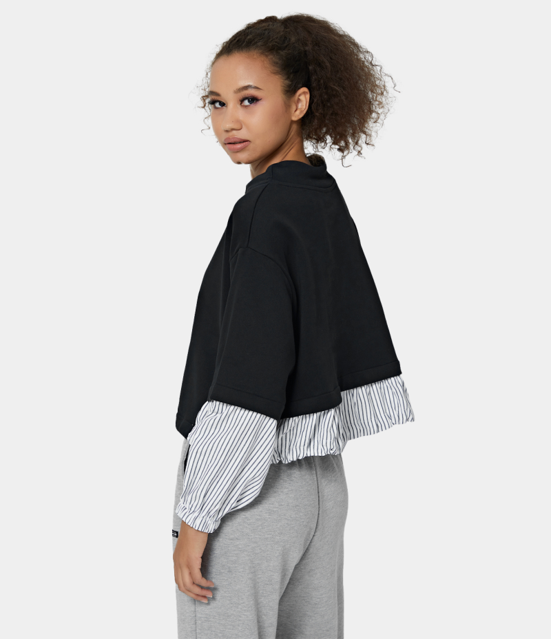 Halara High Boat Neck Drawstring Patchwork Sports Sweatshirt Women's Tops Black | TLAFUCW-67