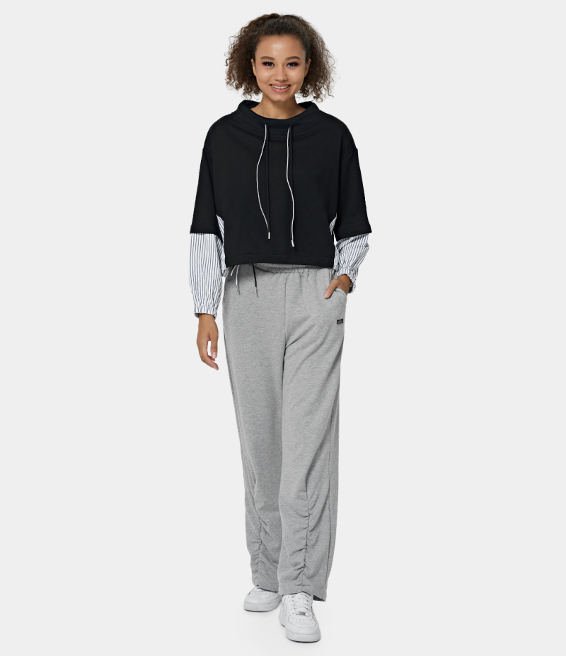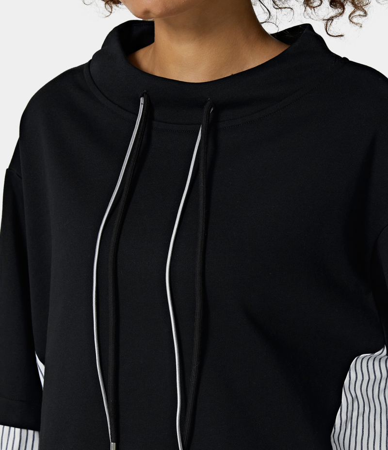 :: Halara High Boat Neck Drawstring Patchwork Sports Sweatshirt Women's Tops Black | TLAFUCW-67