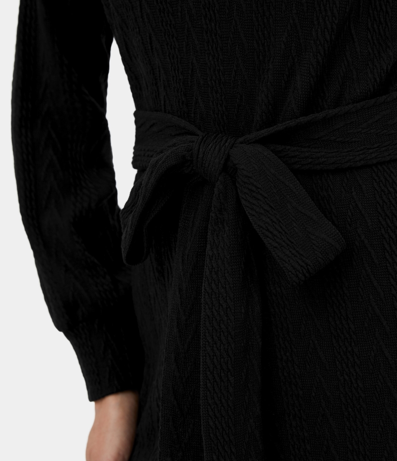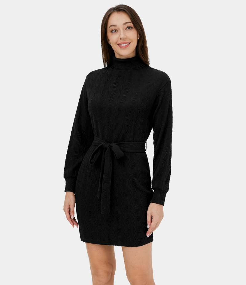 :: Halara High Neck Lace Up Knitted Bodycon Mini Casual Women's Dress Black | 120468-GTB
