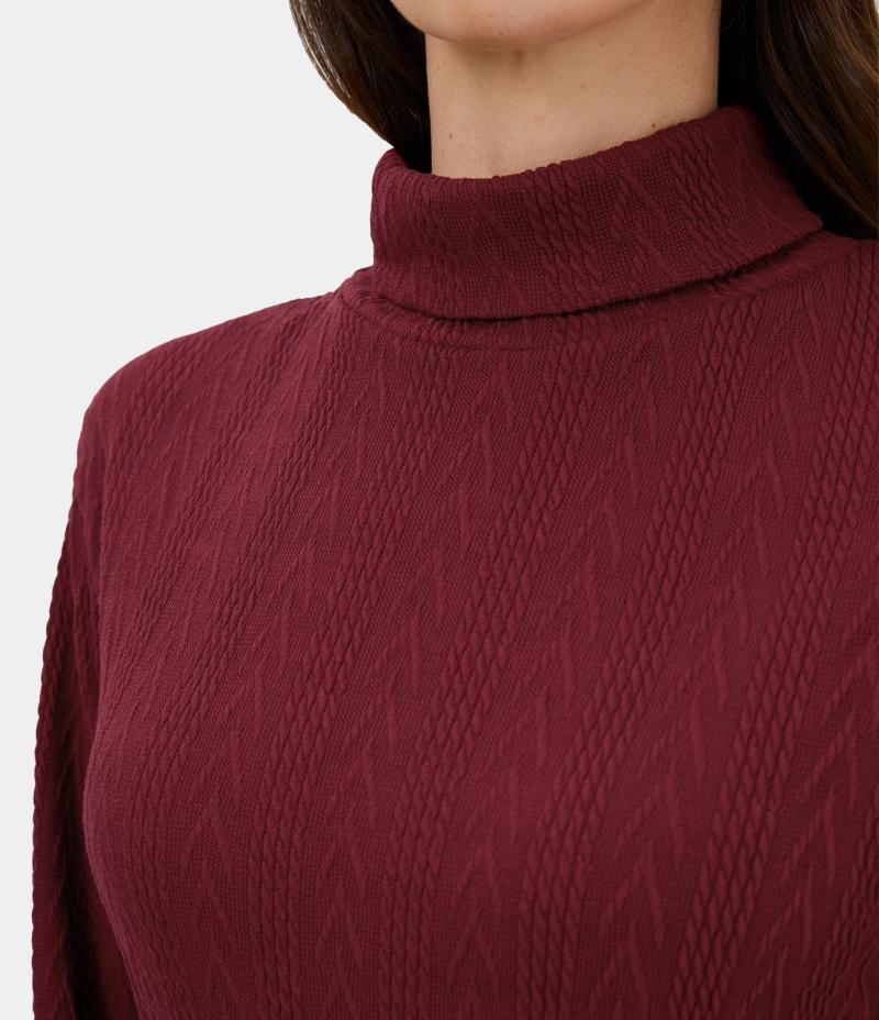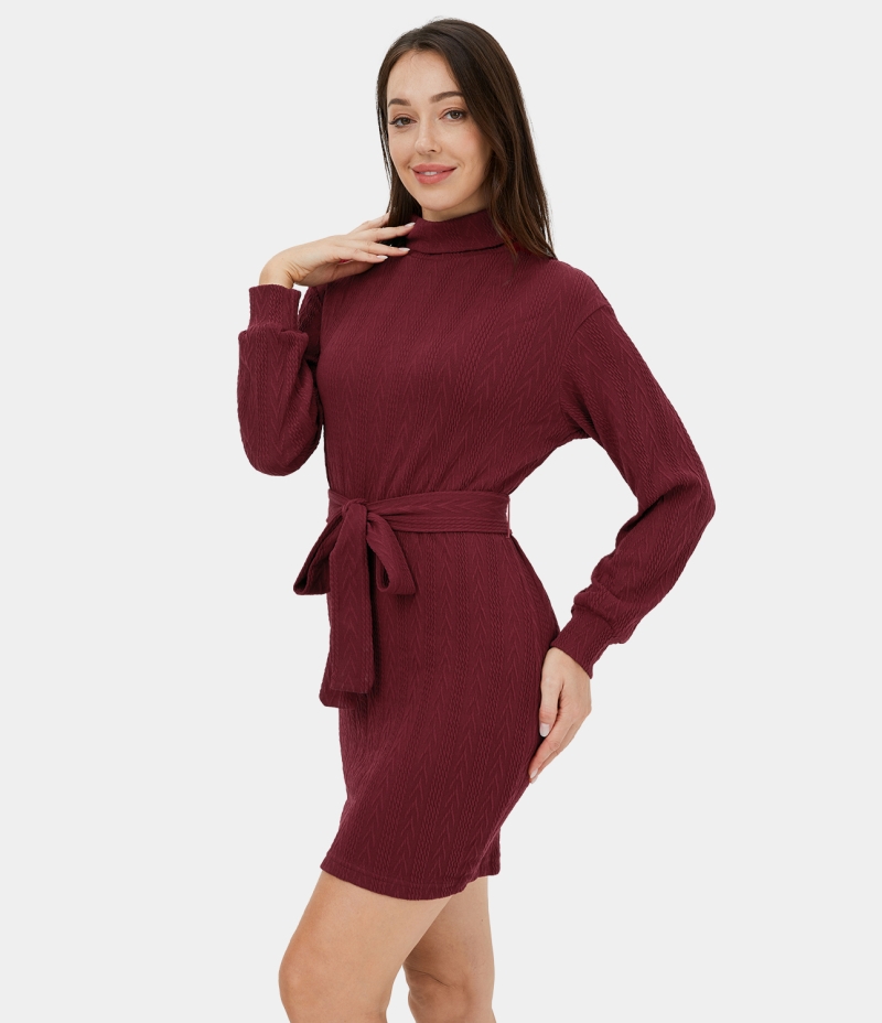 :: Halara High Neck Lace Up Knitted Bodycon Mini Casual Women's Dress Wine Red | 930562-AFP