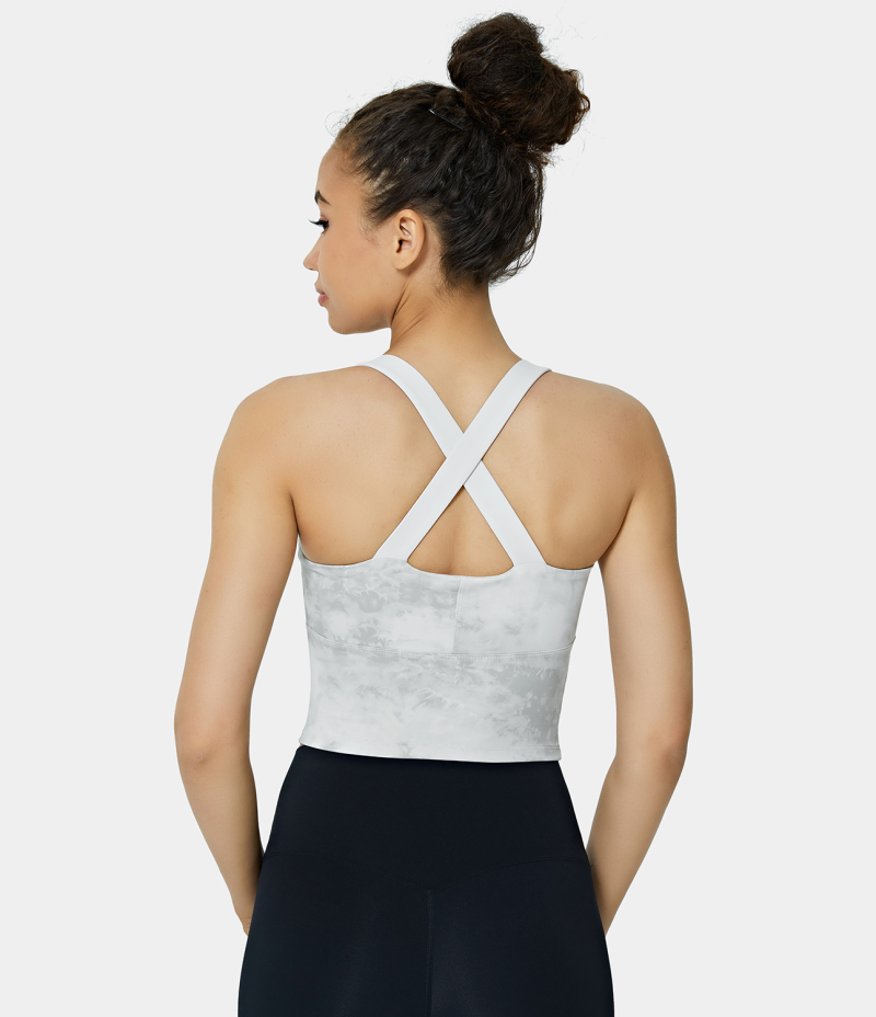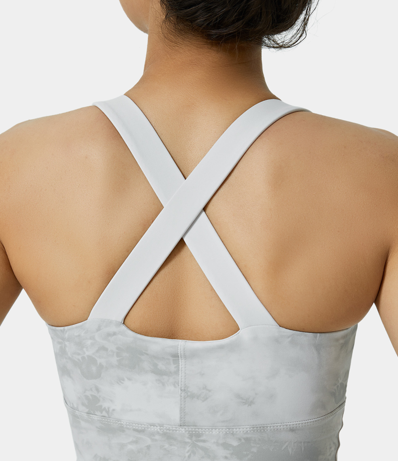 Halara High Support Tie Dye Backless Crisscross Running Sports Bra Women's Tops White | LPTNCFM-56